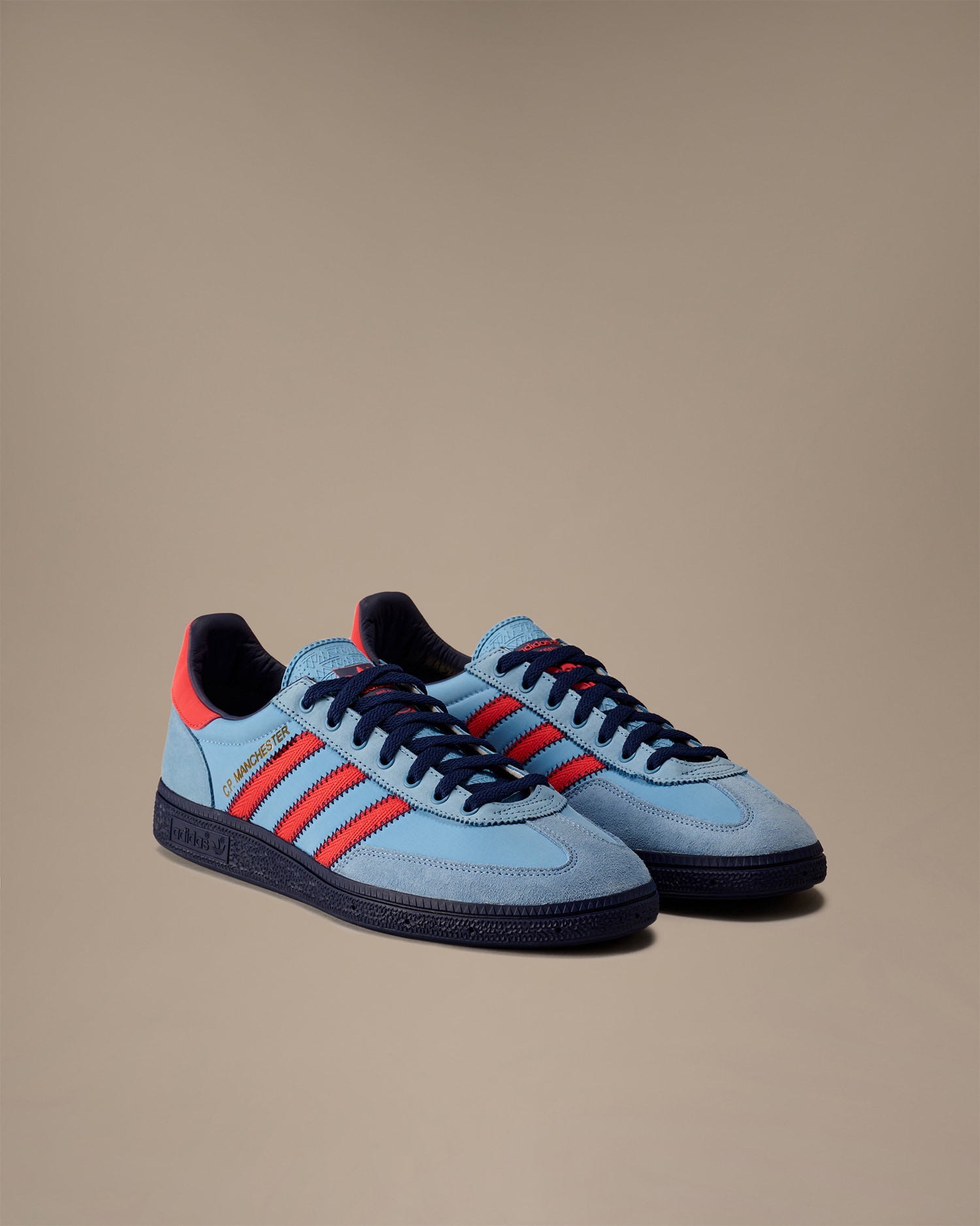 C.P. COMPANYの伝統的なデザインとSPZLのシルエットを融合させた、独自のアパレル、フットウェア、アクセサリーがラインナップ。フットウェアのセレクションには、2021年のコラボで初登場したロイヤルブルーのItalia SPZL、1980年代のユニバーサルを再解釈したパーフォレーション仕様のWimberly SPZL(レザーとスエード)、1980年代のadidas Nepalから着想を得たミッドトップのHelvellyn SPZL、SL82をもとにしたSL83 SPZL、そプレミアム素材でアップデートされたManchester SPZLがラインナップ。