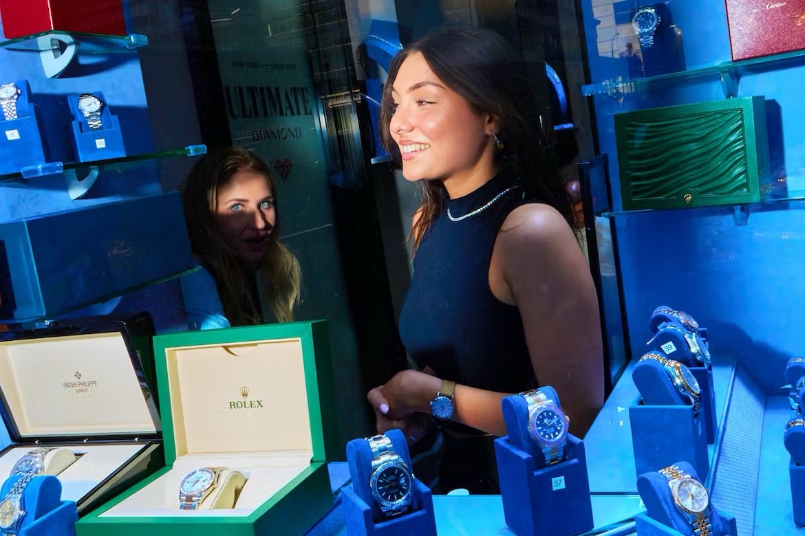 ここで絡んでくるのがソーシャルメディアだ。#WatchTok投稿者からYouTubeやInstagramに至るまで、様々なコンテンツ・クリエイターの流入が新たな波を起こしている。リーム・ザ・ドリーム(Reem the Dreem)ことリーム・ソルタン(Reem Soltan)は、9万人以上のTikTokフォロワー向けに47丁目の様子を発信している。「APジャンボのクロージング」から「本日のお買い得品」まで多岐に渡るショート動画で、商品の原価、交渉エチケット、10セントで手に入るお買い得品、偽物対策などを彼女は紹介している。もっと広く見渡してみてもやはり、ソーシャルメディアはこのきらびやかな47丁目の堂々たる姿をより広く伝える力を発揮している。「TikTok世代は他のどの世代よりも影響を受けていると思う」と、こちらもベンダーのジュリア・アゼル(Julia Azer)は語る。「大学生は今、5年後に初めての高級腕時計を買うための貯金をしている」