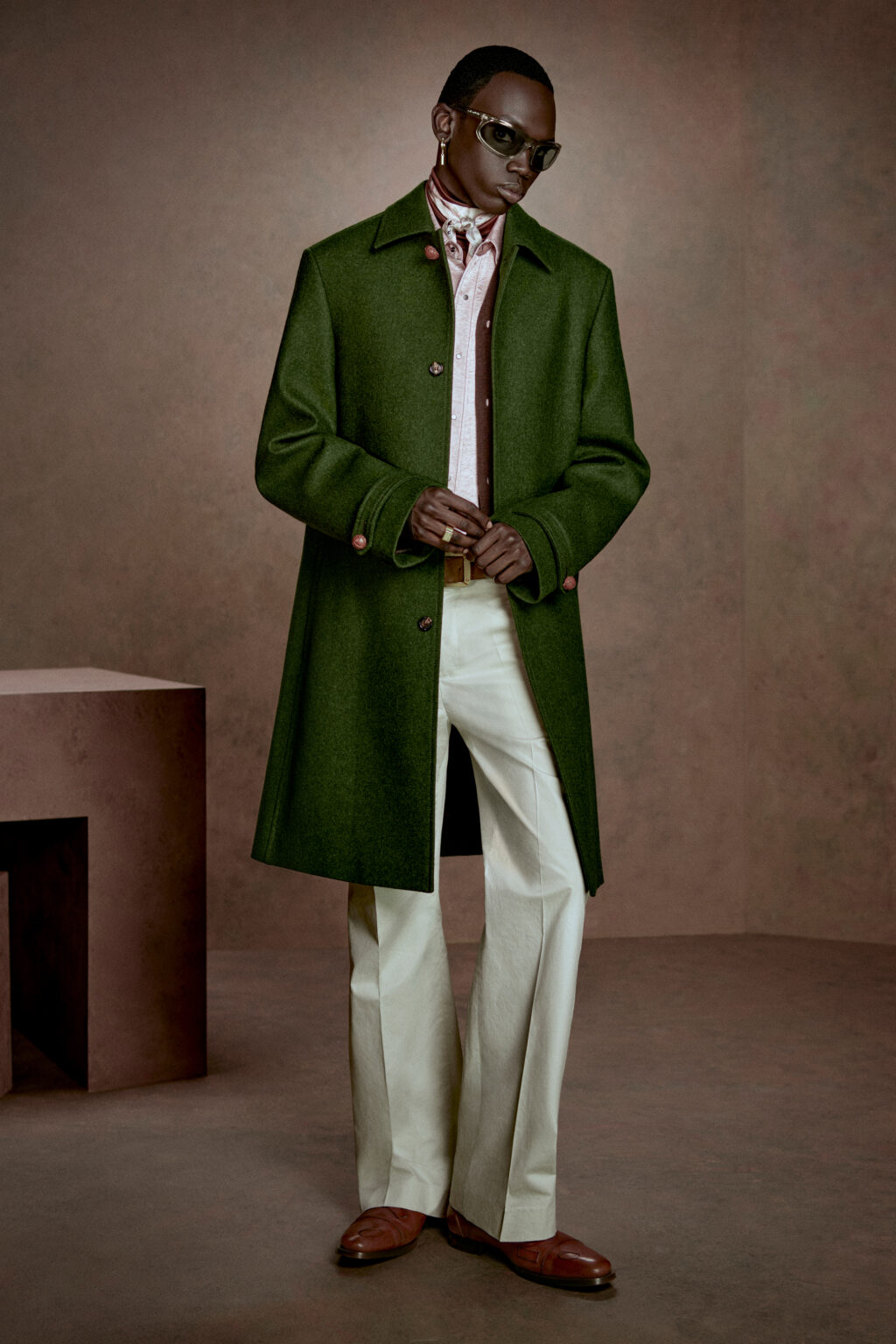 現代の原始人をイメージし、メンズウェアの境界線の移り変わりを表現。伝統的にフェミニンとされてきた素材やカットと、かつてマスキュリニティを象徴していたそれらを並べ、クラフト感あふれるデイウェアと実験的なイブニングウェアを融合し、自己表現の新時代を築いている。