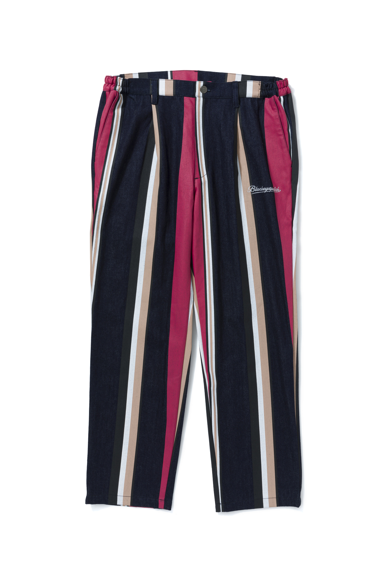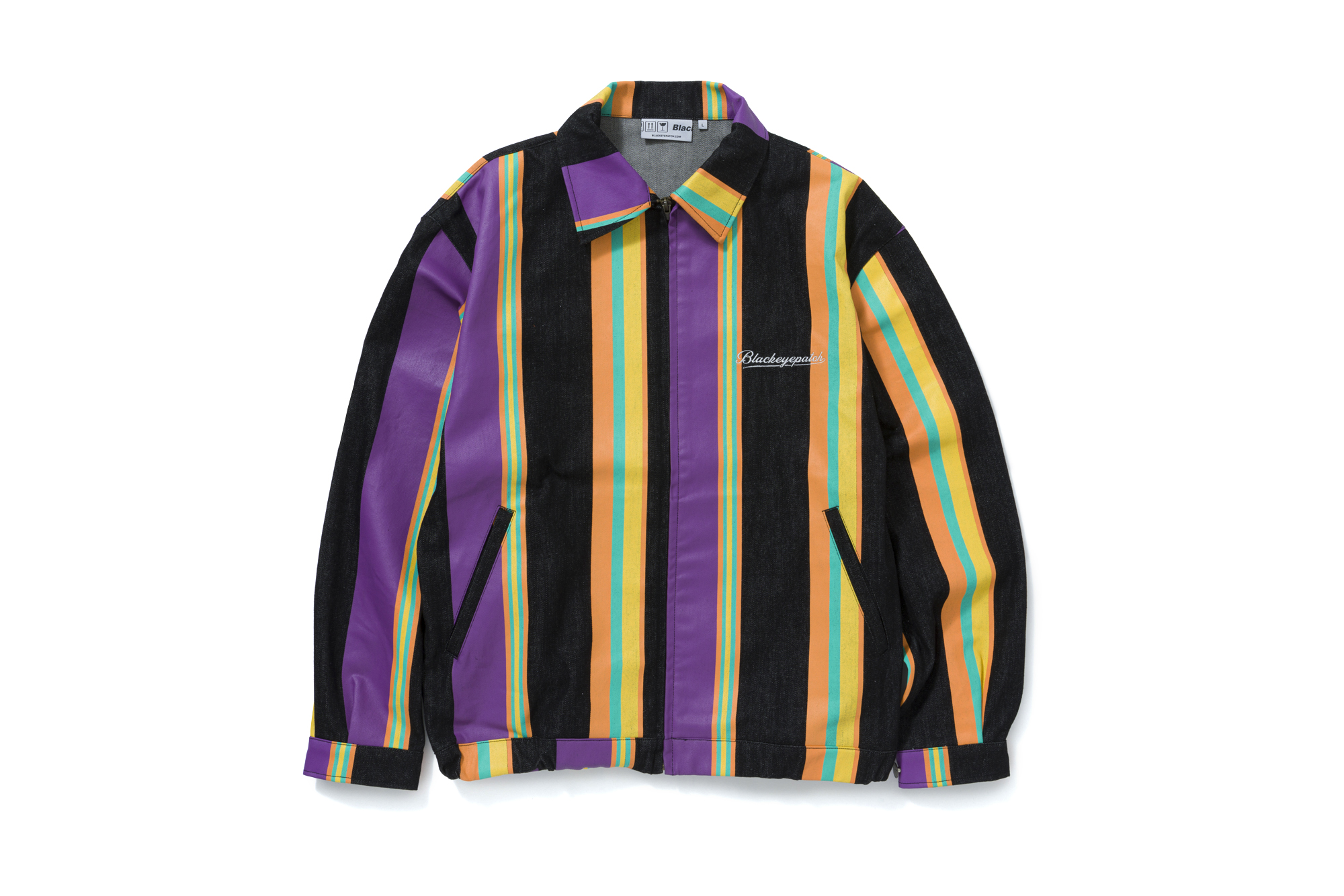 本コレクションの中で一際目立っているのはストライプ柄のデニム生地のアイテムだろう。ストリートブランドのアイテムでインディゴやブラックのデニム生地のものはよく見るだろうが、ストライプ柄とこの配色のデニムアイテムはかなりフレッシュだ。ジャケットはジップが採用され、胸元にはBlackeyepatchと刺繍が施されている。ボトムスにも同じデザインの刺繍が付けられた。