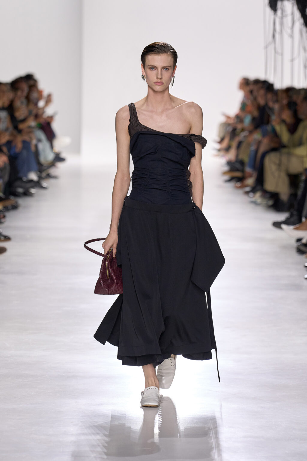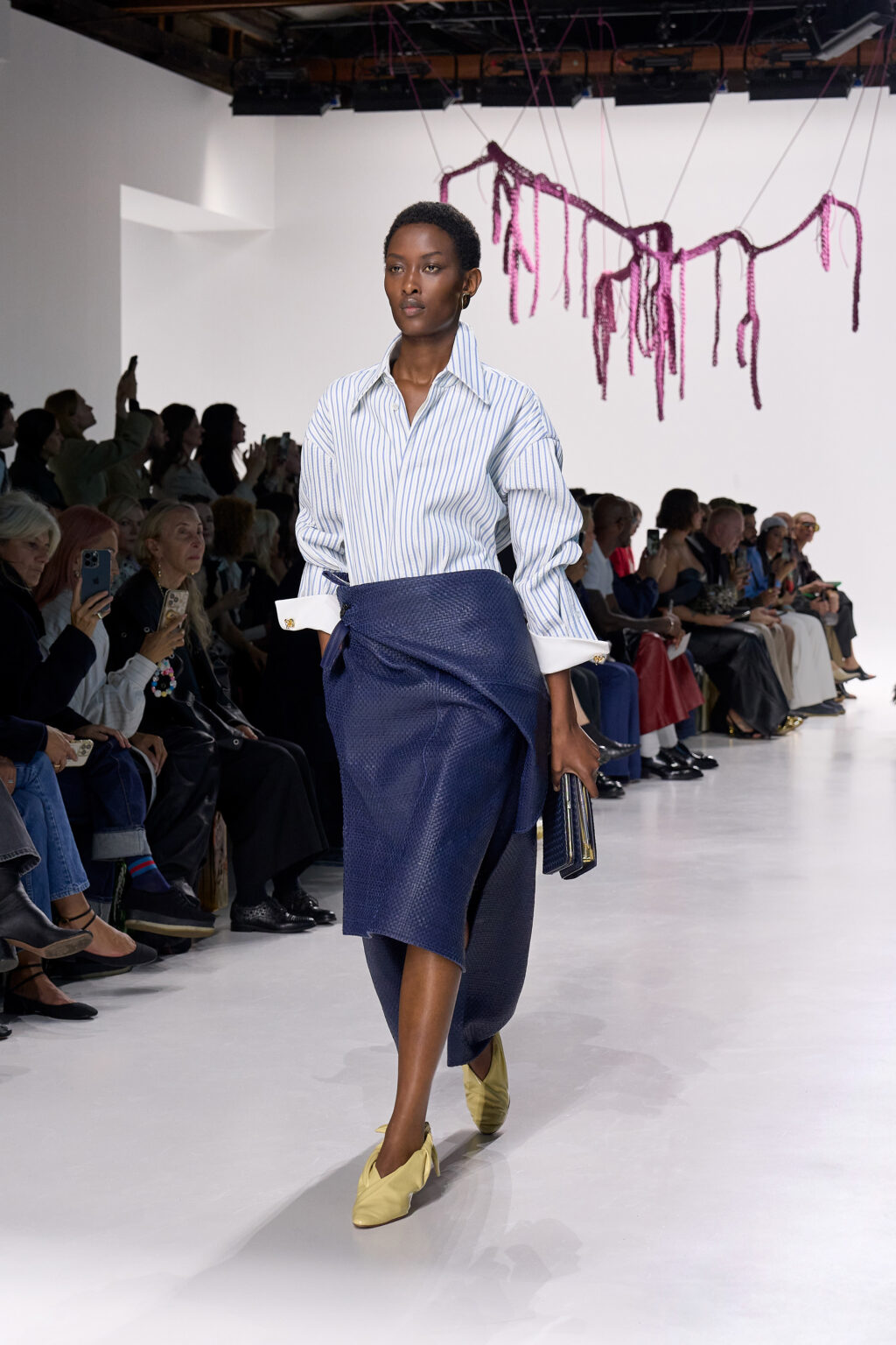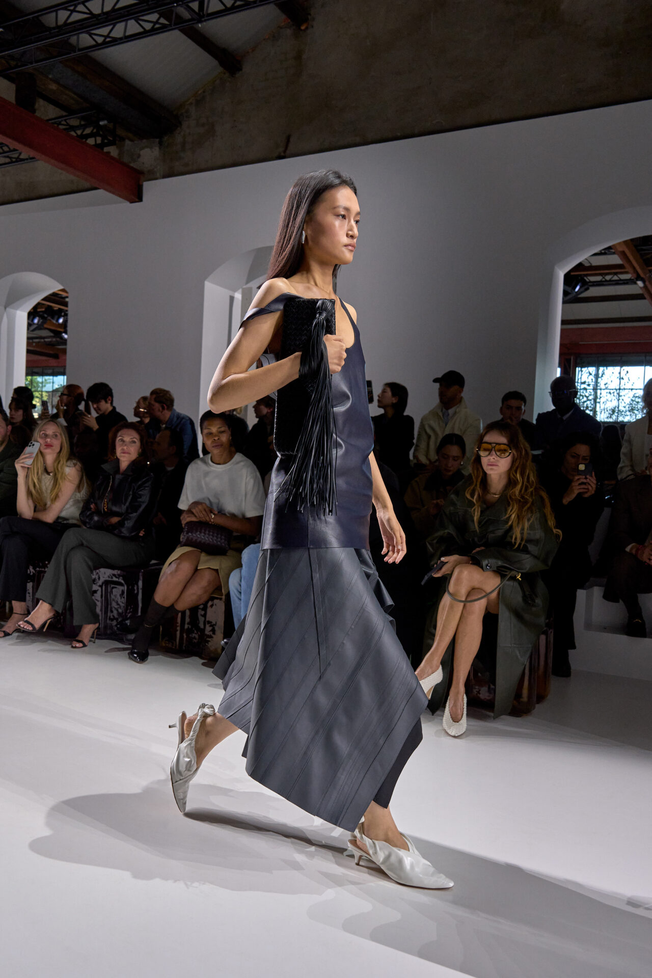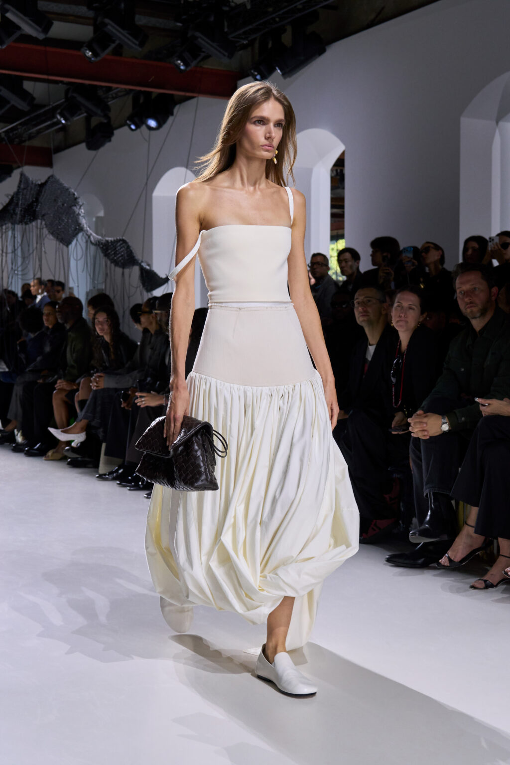 彼女が手がけるBOTTEGA VENETAは、マチュー・ブレイジー(Matthieu Blazy)時代に愛された多くの要素を受け継ぎ、「かつての新生BOTTEGA VENETA」とも言うべき本質を継承している。2026年春夏コレクションは、スタイリッシュでありながら日常的に着こなせるリアルクローズが揃い、各アイテムの流れるようなシルエットや動きが、ブランドの卓越したクラフツマンシップを感じさせる。
