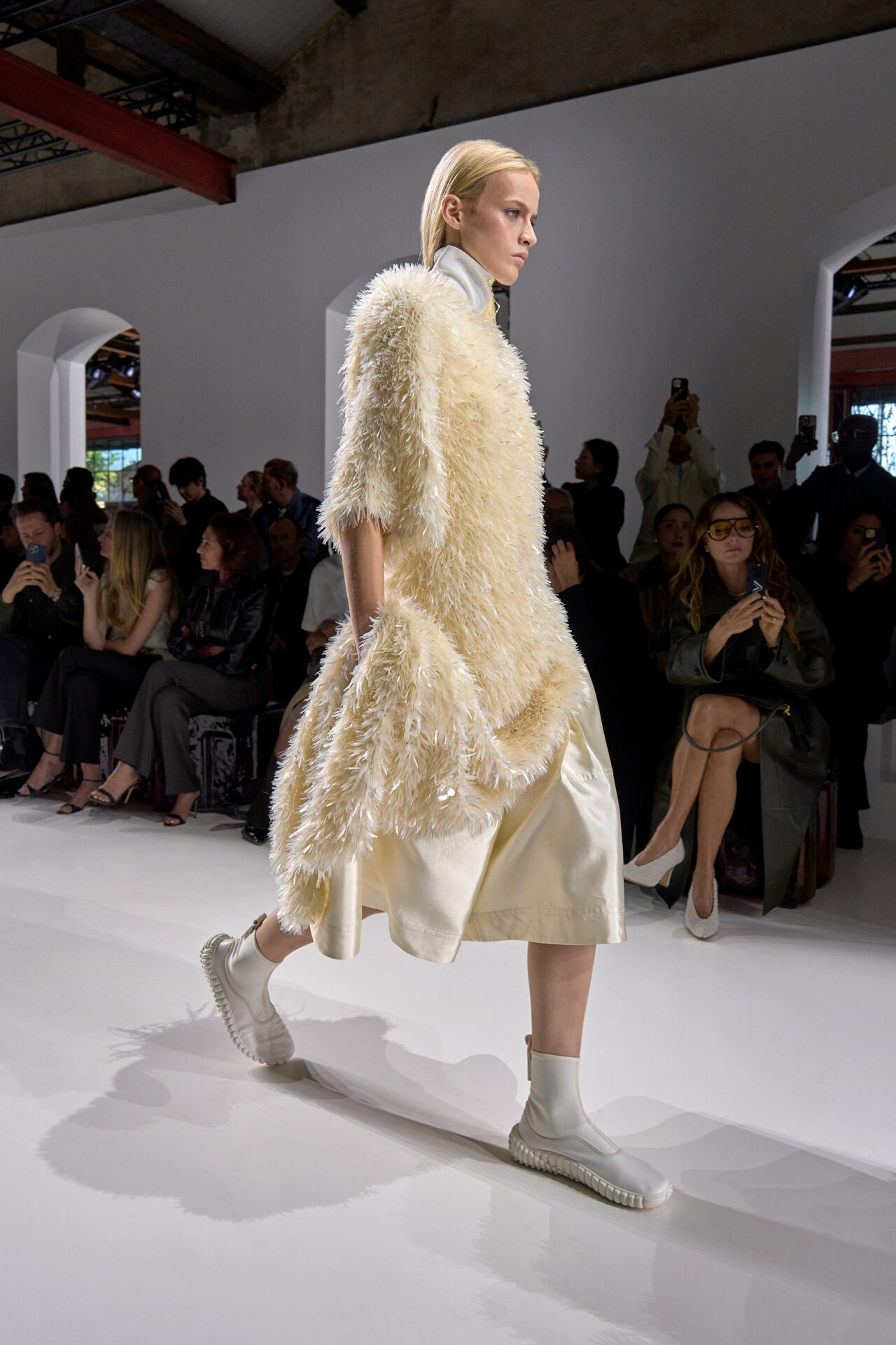 極上レザーバッグは、いつもながらの贅沢さで、誰もが思わず「カートに入れたくなる」ほど。同時に、フラットなレトロ風スニーカーから洗練されたスリッポン、未来を思わせるデザインまで、フットウェアも魅力に満ちていた。
