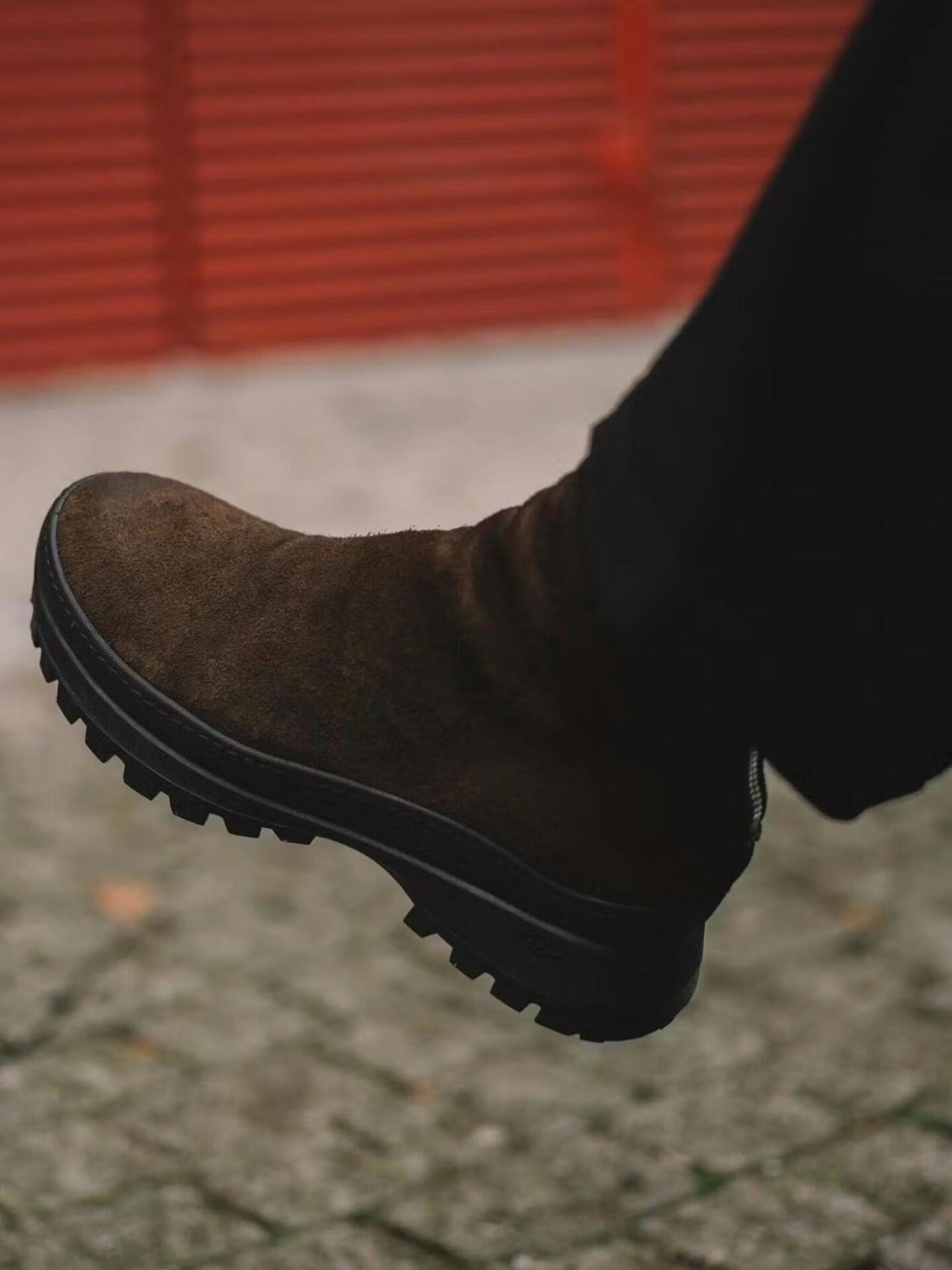 これこそが、ブーツを “スニーカー化” する正しいやり方だ。デザインに内在する「ブーツらしさ」をしっかりと引き出し、フォルムの美しさを際立たせる。スニーカー要素は、主役ではなく、あくまで引き立て役に徹するべきだ。ラインは崩さず、全体のバランスを厳密に保つ。ミリタリーや機能主義に寄せてはいけない。絶対に、寄せてはいけない。