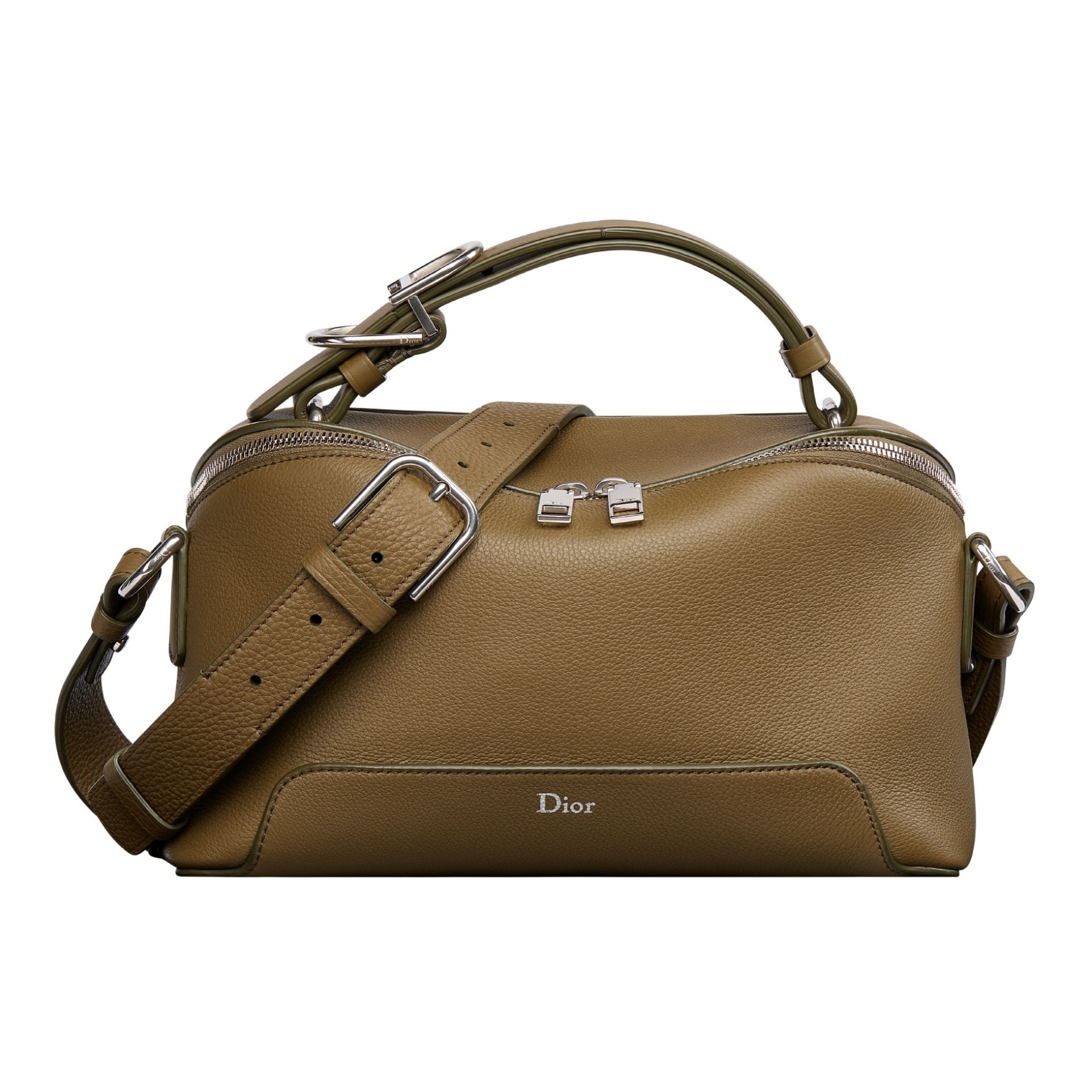 しなやかでゆったりとしたシルエットに、建築的な美しさをさりげなく取り入れたデザインが特徴。グレインドレザーのボディに、調節可能なアーチ型ハンドルと “CD” ロゴのバックルを組み合わせ、Diorらしいディテールを現代的に表現している。