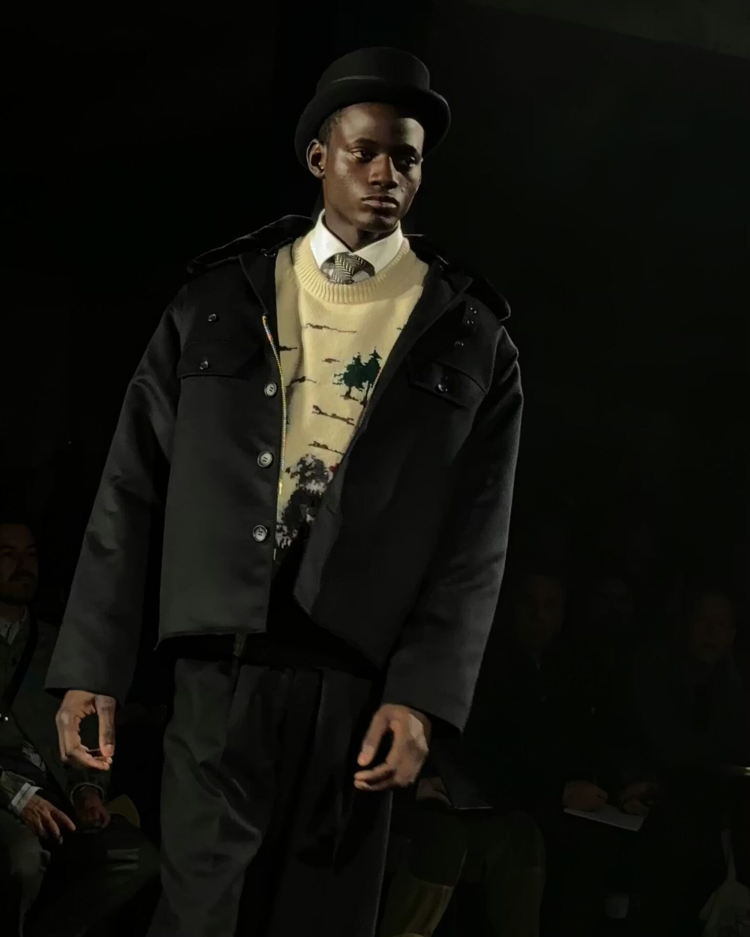 JUNYA WATANABEのメンズウェアラインは通常、コラボの宝庫だ。だが2026年秋冬コレクションは比較的控えめで、代わりにシルクハットや燕尾服といったクラシカルな装いに焦点を当てていた。その分、実現したコラボはより強いインパクトを残した。中でも、COMME des GARÇONS(コムデギャルソン)のデザイナーによるSTÜSSYとの予想外の再会は、前回よりも(わずかに)規模を広げていたこともあり、ひときわスパイスの効いた存在として際立っていた。