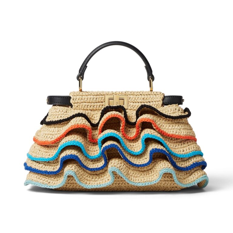 スポーツからインスピレーションを得たウェアやバッグ、アクセサリーを太陽光(UV)に当てると、シグニチャーの「FFロゴ」を取り入れたフェンディの新コードがホワイトダイアモンドのキルティングからブラックに浮き出る仕組み。この効果は、「ものごとは、見かけ通りではなく、常に発見するものがある」というフェンディの精神と共通する。