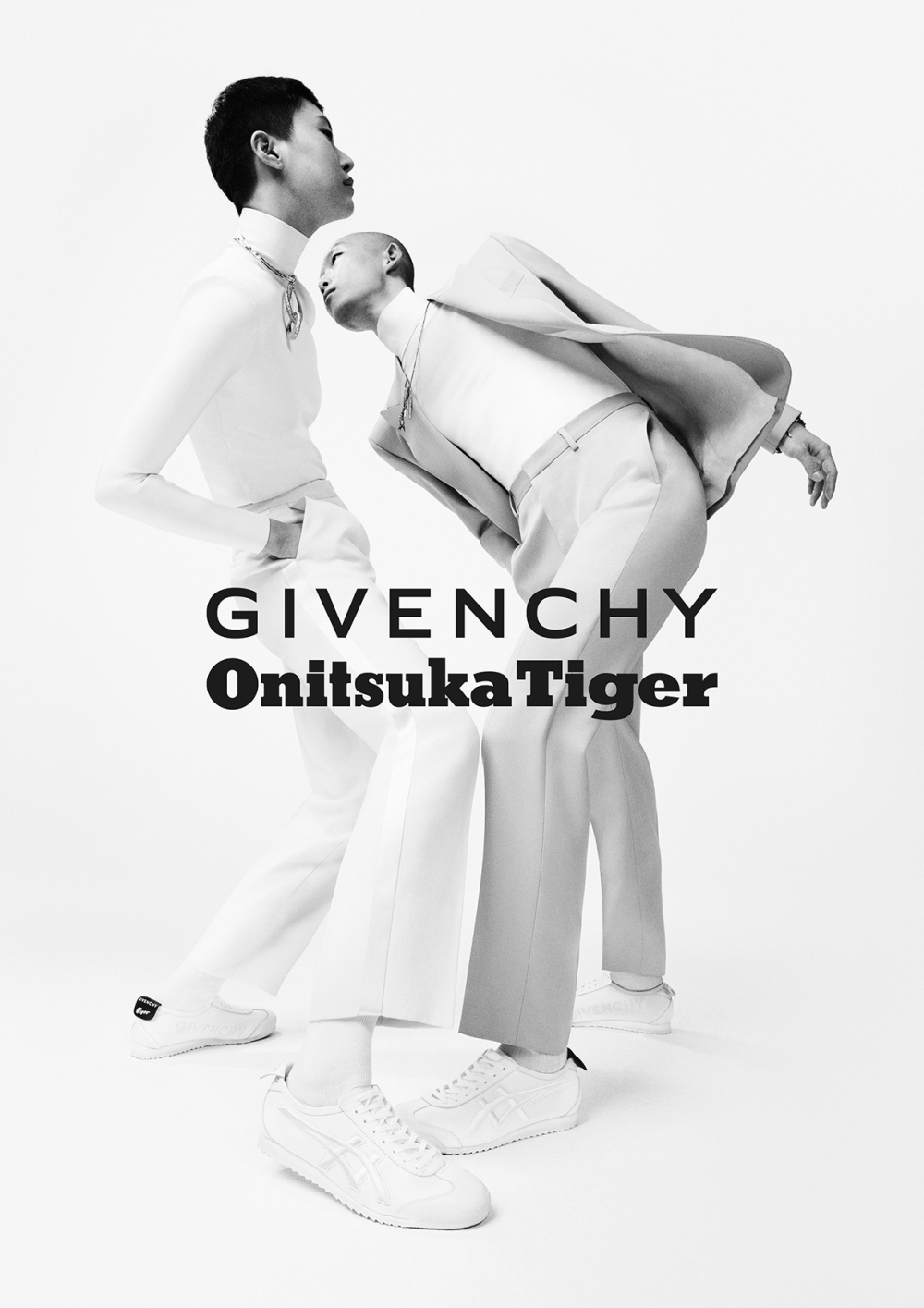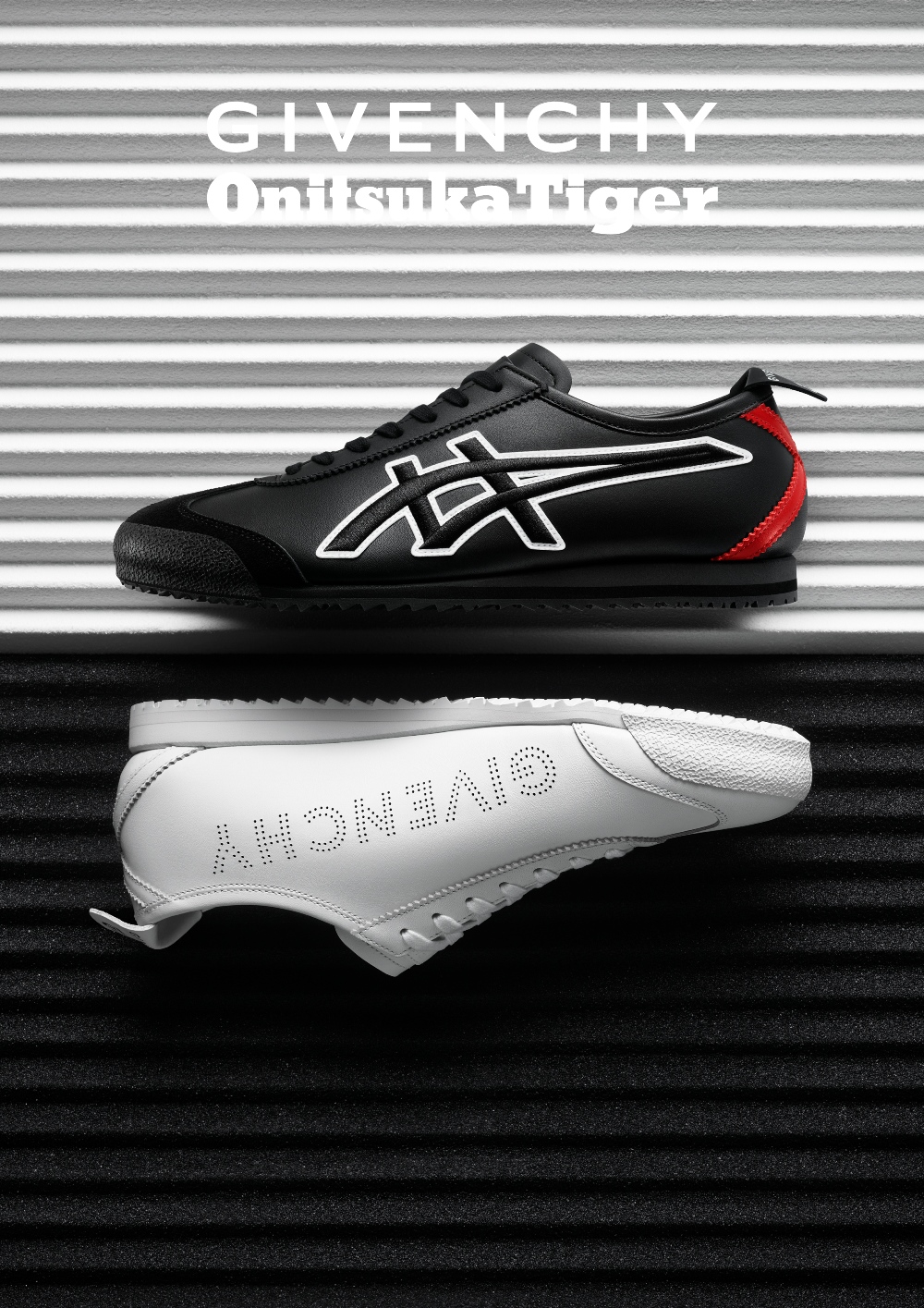 オニツカタイガーがラグジュアリーファッションブランドと組むのは初めて。GIVENCHYも、世界的な規模でスニーカーブランドとパートナーシップ契約を結ぶのは今回が初となる。オニツカタイガーのアイコンモデルで、クレアも愛用しているという「MEXICO 66TM」を再解釈し、モノクロの世界観にグローバルな視点を落とし込んだ。