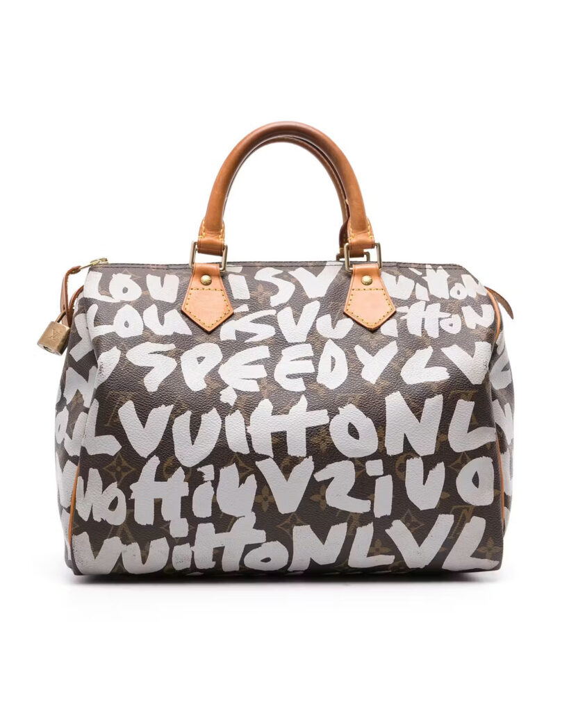 マーク・ジェイコブスが自身の憧れであるアーティスト、スティーブン・スプラウス(Stephen Sprouse)を起用し、LOUIS VUITTONのアイコンであるモノグラムを刷新したことは、変革の時代を告げる出来事であった。「グラフィティ」バッグコレクションで彼は、かつてLOUIS VUITTON側から「絶対に変えてはいけない」と指示されていたロゴを変えた。スプラウスによる走り書きタッチのブランドネームがバッグやアクセサリーのシリーズ全体に大胆に施され、特に「グラフィティ・スピーディ・バッグ」は瞬く間に注目を集めた。スプラウスのグラフィティ「タグ」を言わずと知れた「LV」モノグラムの上に印刷することで、クラシックなLVバッグが破壊されたような感覚を生み出した。憧れだったはずのモノグラムデザインがスプラウスのネオンカラーの走り書きに霞むとは、元のバッグの価値はどれほどだったのか? そう思わせる、当時としては過激なデザイン選択だったが、コレクションは若く尖った顧客層に響いた。LOUIS VUITTONのラグジュアリーDNAを維持しつつ、単なるデザインを超えて新鮮な感覚を融合させ、ハイアートと商業ファッションの隔たりを埋める文化的声明としてのコラボだった。このロゴハックから20年後にはデムナ・ヴァザリア(Demna Gvasalia)とアレッサンドロ・ミケーレ(Alessandro Michele)がGUCCI(グッチ)とBALENCIAGA(バレンシアガ)それぞれのブランドのコードとシグニファイアを入れ替え、海賊版とオマージュの境界線を越える不気味の谷現象的コラボを生み出した。また2022年のキム・ジョーンズ(Kim Jones)とドナテッラ・ヴェルサーチェ(Donatella Versace)のコラボ「FENDACE」でも同様に、VERSACE(ヴェルサーチェ)のメドゥーサロゴとFENDI(フェンディ)の象徴的なインターロックド・ズッカが融合された。