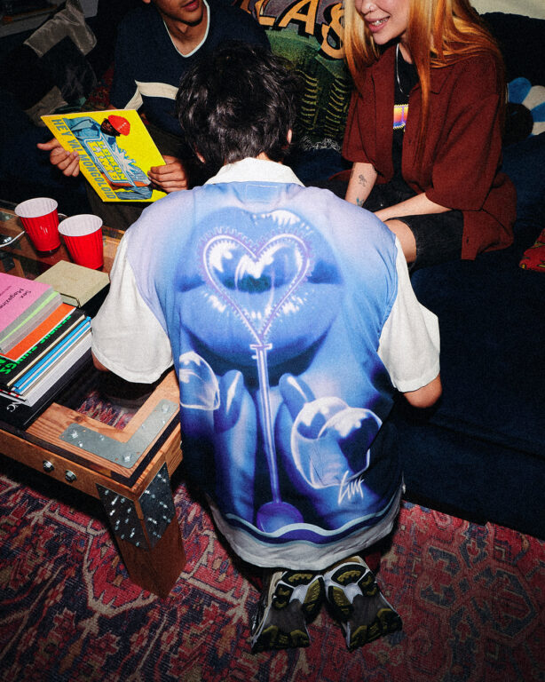 玉虫色のような生地にリフレクターロゴをあしらったリバーシブルボマージャケット、両社のブランドロゴをラインストーンで表現したフーディー、プレイボーイ誌史上で記憶に残る表紙をモチーフにしたグラフィックTシャツのほか、伝説的ナイトクラブ「PLAYBOY CLUB」からインスパイアされた14kゴールドプレートのKeyネックレスやゴールドのクレジットカードケースなどを展開。