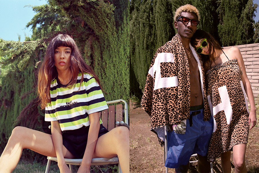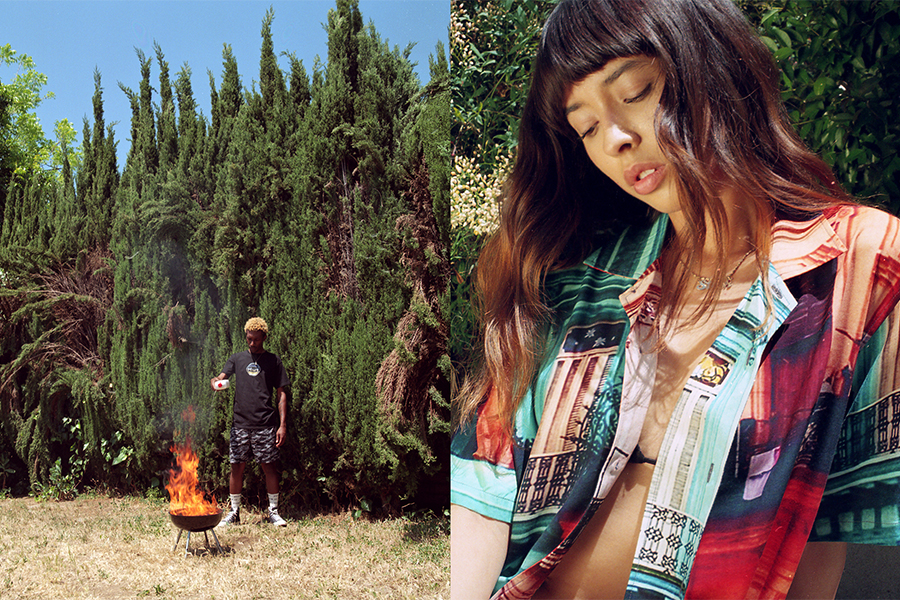 タイダイ柄やオールオーバープリント、ネオンカラーを落とし込んだポップな印象のアイテムを多数ラインナップ。90年代に流行したハイパーカラー、UVリアクティブ加工を施した生地を用い、熱に反応してボディの色が変化するユニークなTシャツも展開する。