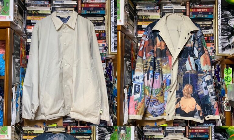 横尾は美術家として活動しながら、1977年からISSEY MIYAKEパリコレクションの招待状のデザインを手がけてきた。今回は「TADANORI YOKOO ISSEY MIYAKE 0(ゼロ)」と称し、横尾の作品を一枚の布の中に再構築したブルゾンを発表。アイコニックでパワフルな8作品を、それぞれ7色の糸で織り上げた。表面に使われない色の糸は裏側に出るため、左右が反転した横尾の絵がジャケットの裏側に現れるという。