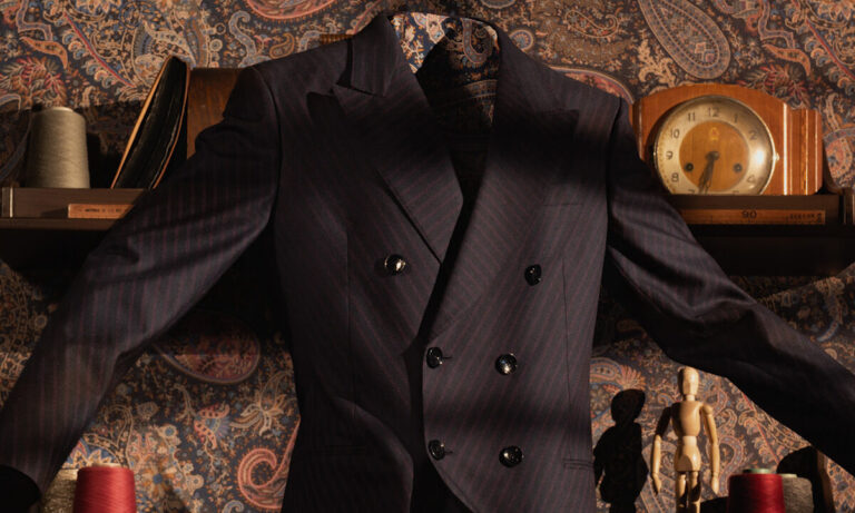 初めてETROのジャケットに袖を通した瞬間に覚えた「内からエネルギーが爆発する感覚」。その運命的な出合いから、ETROの歴史やドローイングアーティストの魂が宿るペイズリーの線の強弱や色の息遣いに触れ、彼の表現者としての感性はさらに研ぎ澄まされていく。