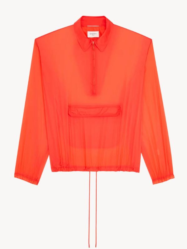 初っ端からもう絶対にこれ、ブランドサイドもスポーティな実用をされることは絶対に意識してないだろうものを紹介しようとしている。そもそも地平線レベルのまっすぐな肩パッドが入っているので、早朝ランで俺の肩から朝日が昇っていくのを感じろっていうSAINT LAURENT(サンローラン)のウインドブレーカー。逆に肩バッドでキャプテン翼の作画感が出るので、超人的な身体能力が発揮される可能性は微レ存。