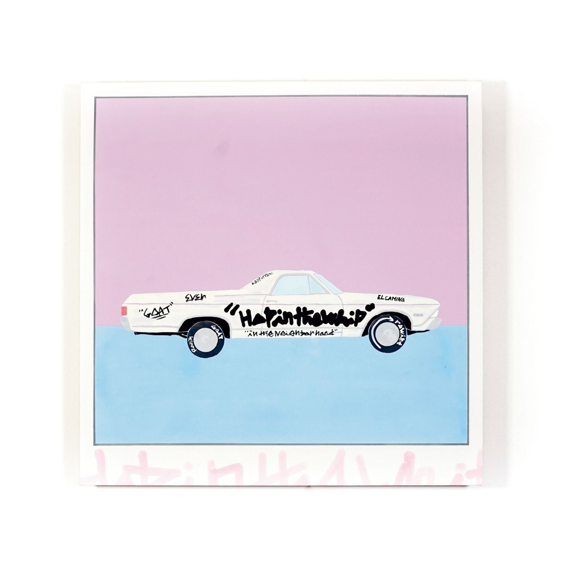 足立区はエルカミーノが走ってるような街なんです。僕の友達も最初はアメ車に乗りたいと、維持費とか考えないで買って結局売るんですけど。そういうカルチャーへの憧れが強い街でもあったし、僕の周りにそういう人達がいました。あとは映画に出てくるようなワンシーンを切り取ってその構造を、自分の身近にある日本的なものに組み合わせています。切り取っている構図は映画の、それこそガス・ヴァン・サントとか、カルチャー的な1990年代の映画のワンシーンに出てきそうなものをデフォルメして描いています。