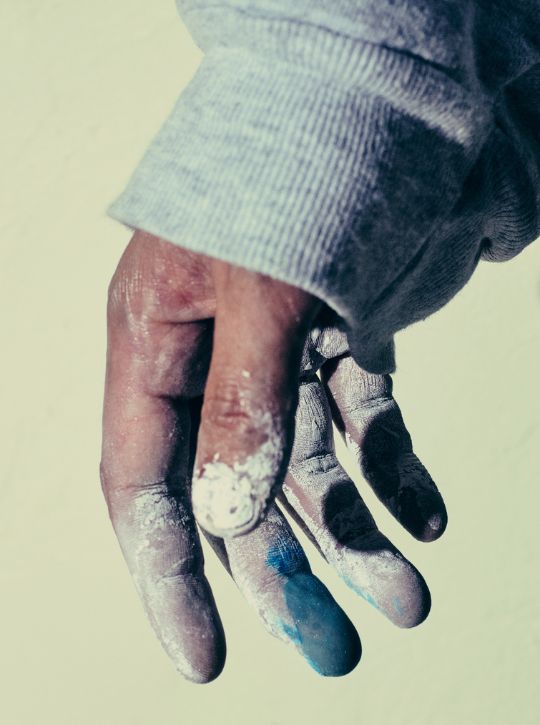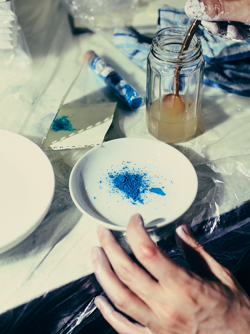 入ってみて、やっぱり合ってると思いましたね。手間がかかるのもあまり苦にならなかったし、画材の魅力も感じて。四季によって取れる色が決まっていたり、毎朝まず膠を煮込むところから始めるところとか、一色一色チューブからピュッて出すのではなく手で練るという少しの手間は、愛着が湧く時間でもあるから。一個一個の物質に時間を使えるのがいいと思うんですよね。現代のとにかく合理的に進むのがいいとされる中では真逆を進んでいるんですけど。