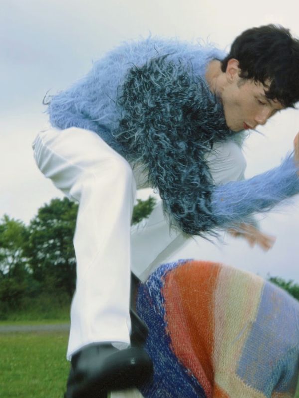 2019年に自身の名を冠したブランドを立ち上げて以来、具志堅はそうしたある種の切実さを自身の代名詞としてきた。奇抜ながらも着やすい彼の服は、ニットウェアの世界におけるほぼ全てのルールや慣習に、どこか逆らっているようにも見える。「ニットがとにかく好きなんです」と彼は言う。「というのも糸そのものから糸の組み合わせ方、編み方の技法、パターン、質感、色、デザインに至るまで、あらゆる要素に自由があるから」