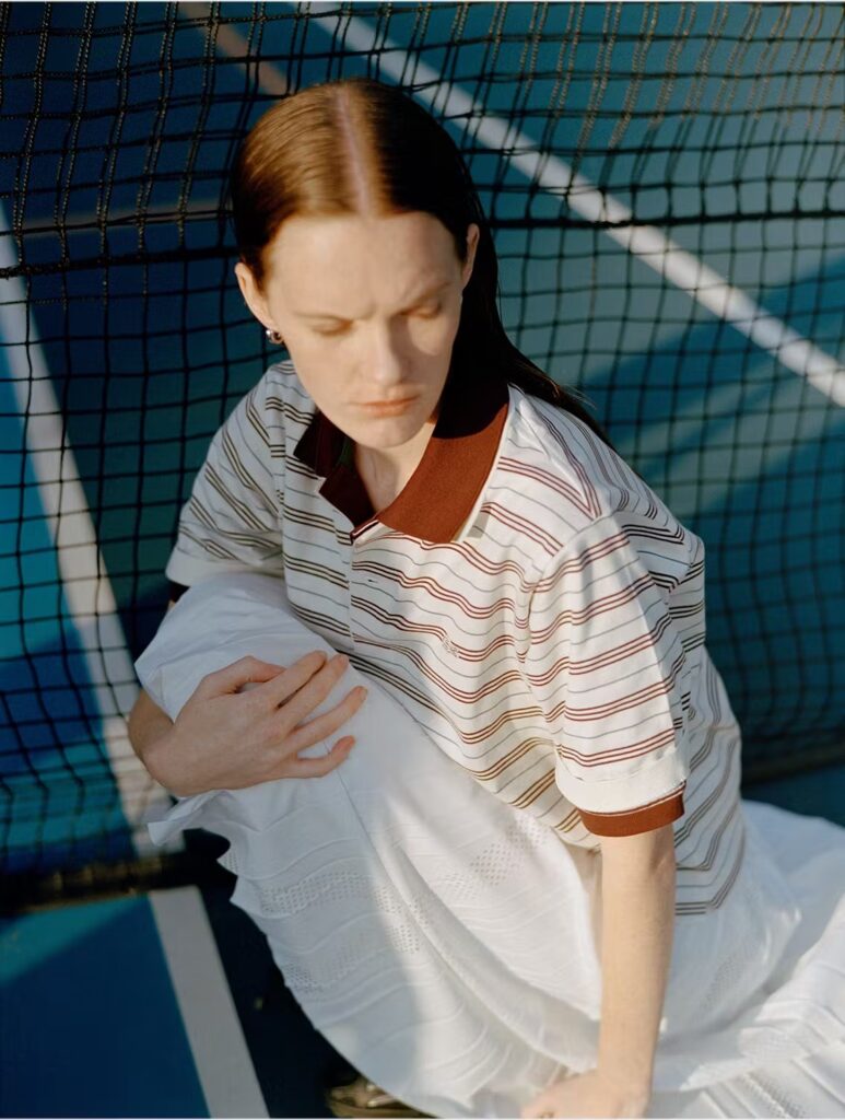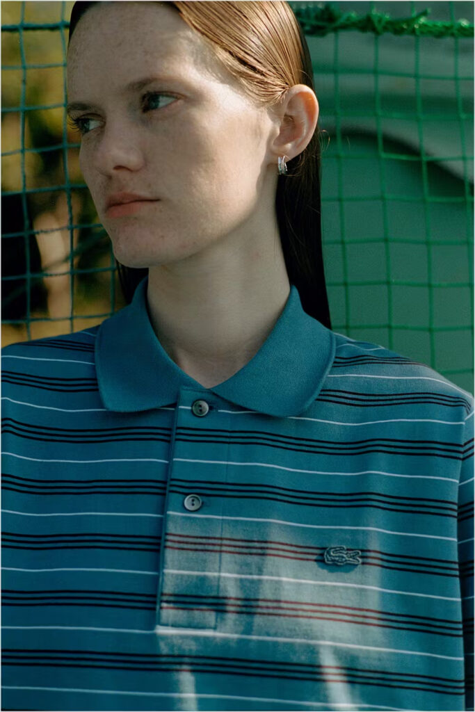そして、ロゴをポロシャツとほとんど見分けがつかないほど控えめに配置することで、ADAM ET ROPÉは理想のポロシャツ像にたどり着いた。日本のリテーラーである同ブランドは、LACOSTEの象徴的なロゴを、スポーティーでありながら上品な存在へと昇華させた。その手法は、かつてnonnative(ノンネイティブ)がLACOSTEのアイテムを再構築して話題を呼んだ試みにも通じるものがある。