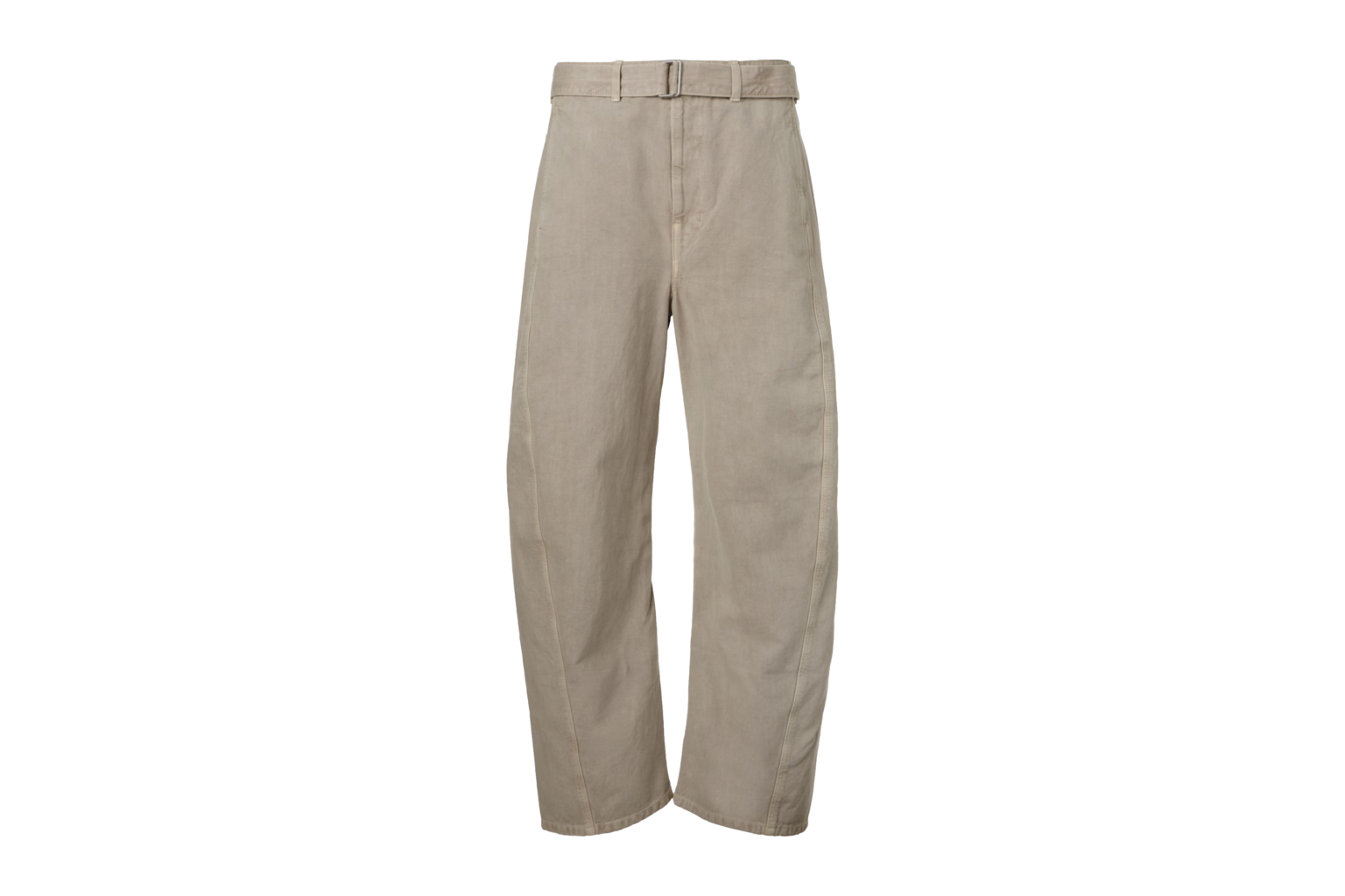 この話題について何人かのファッション通に聞いてみたところ、ほぼ例外なく名前が挙がったのが、LEMAIRE(ルメール)のあのねじれたスラックスだった。最近Vintedで見つけた格安の一本をめぐって、知らぬ間に同僚と入札合戦を繰り広げていたかどうかはさておき、このパンツが今や多くのメンズウェア愛好家の脳内(そしてクローゼット)に居座る、汎用性が高くて一味違う芸術的なパンツの象徴となっている。コットン素材は丈夫でありながら通気性にも優れ、フォルムはさりげなく彫刻的で、驚くほどスタイル良く見せてくれる。シーズンを問わずフルセットアップでも、白Tシャツ一枚でも成立する、言わばパンツ界のOUR LEGACY(アワーレガシー)のカミオンブーツのような存在だ。特定の層に、ここまで広く普及しているのには、やはり理由がある。