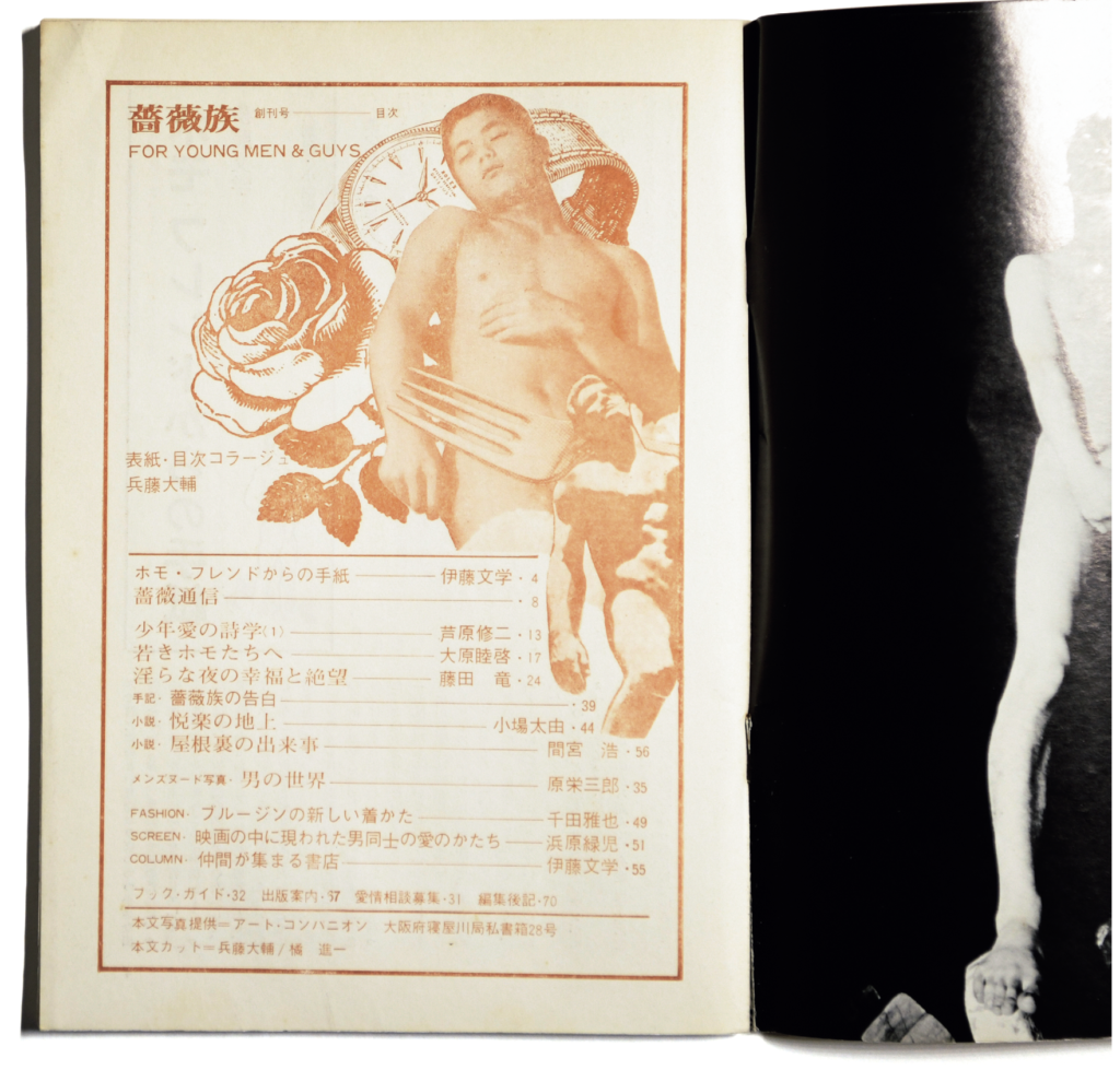 『薔薇族』は、商業誌として初めて成功した昭和のゲイ雑誌だ。男性のイラストを表紙に掲げ、主に読者から寄せられた絵や小説、悩み相談などの便りで構成され、1号1500万円もの広告料を売り上げるほど市場が集中していたという実績からもその影響力の強さがうかがえる。戦後の焼け野原で本を作れば売れた時代に、父親が残した出版社を極貧状態で引き継ぎ、世間一般にはまだ理解度の低いテーマであったにもかかわらず、取次業者との口座を正式に開通させて1971年に創刊させたのは、ビジネスの才覚を持つ編集長の伊藤文學氏が39歳の時だった。
