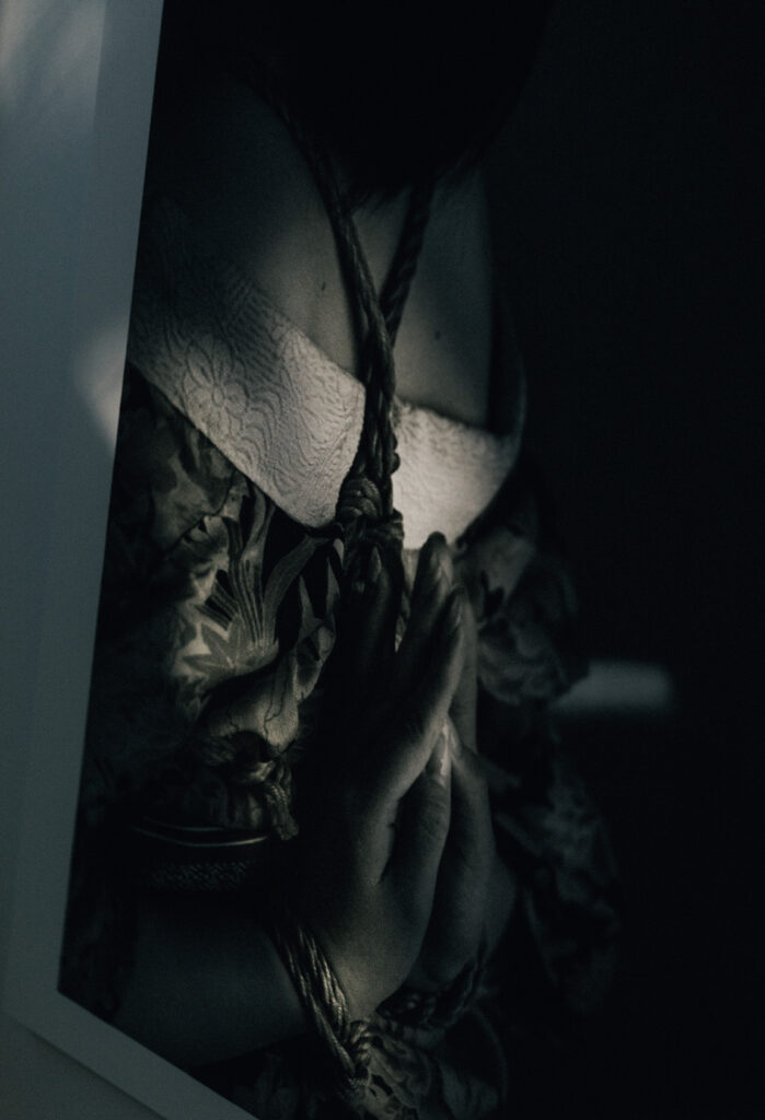 Kinoko氏のモチベーションにフェティシズムは存在しない。あくまで美の可能性を引き出すために、被写体と協力しながら作り上げる彼のメソッドには、受け取り手の感性の高さが求められる。例えるなら生花のように、型を守りながら素地を最大限に活かし美しく仕上げる。緊縛のエロスは芸術であり古くから受け継がれてきた伝統文化に通じる精神論や “道” にたどり着く。