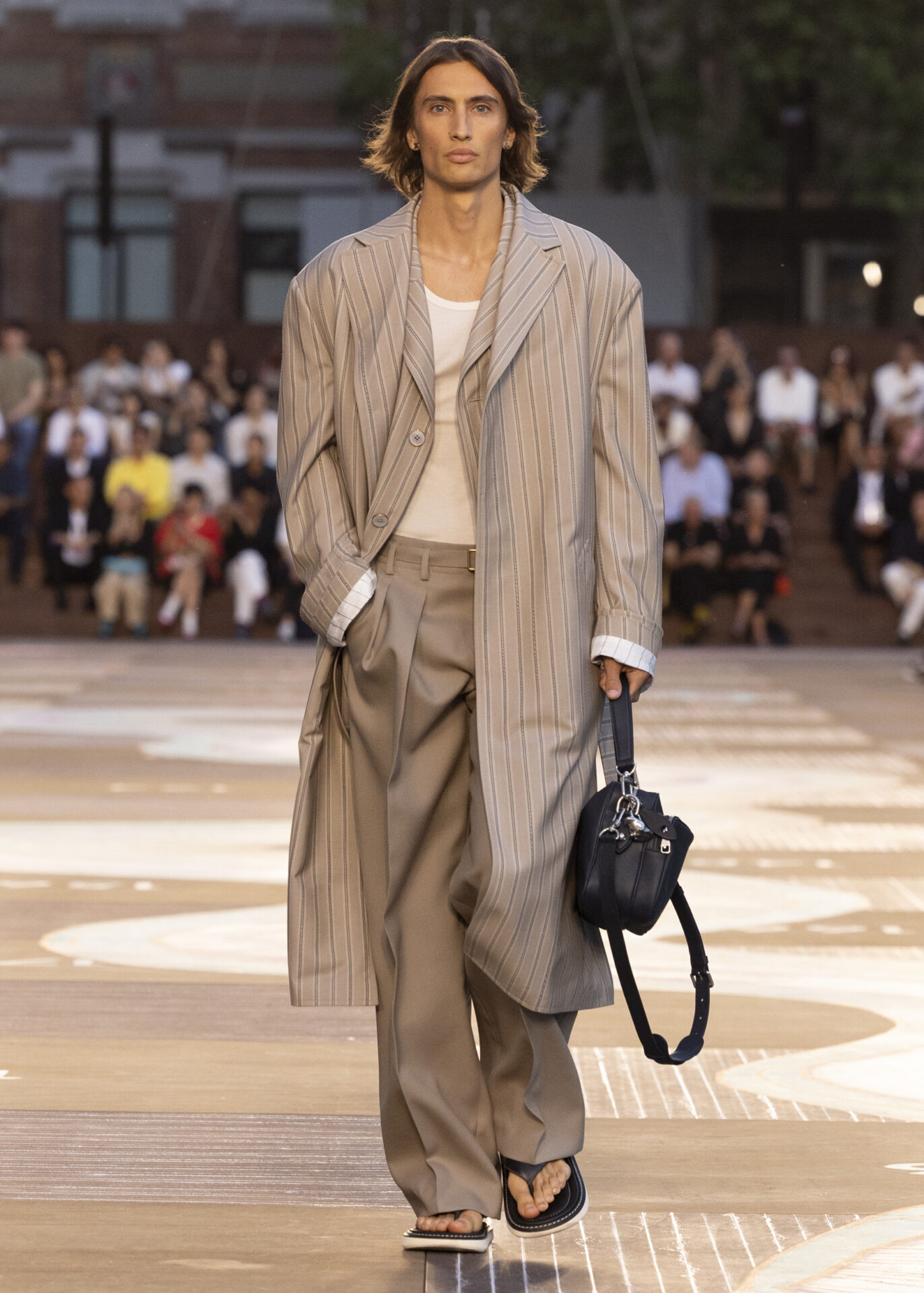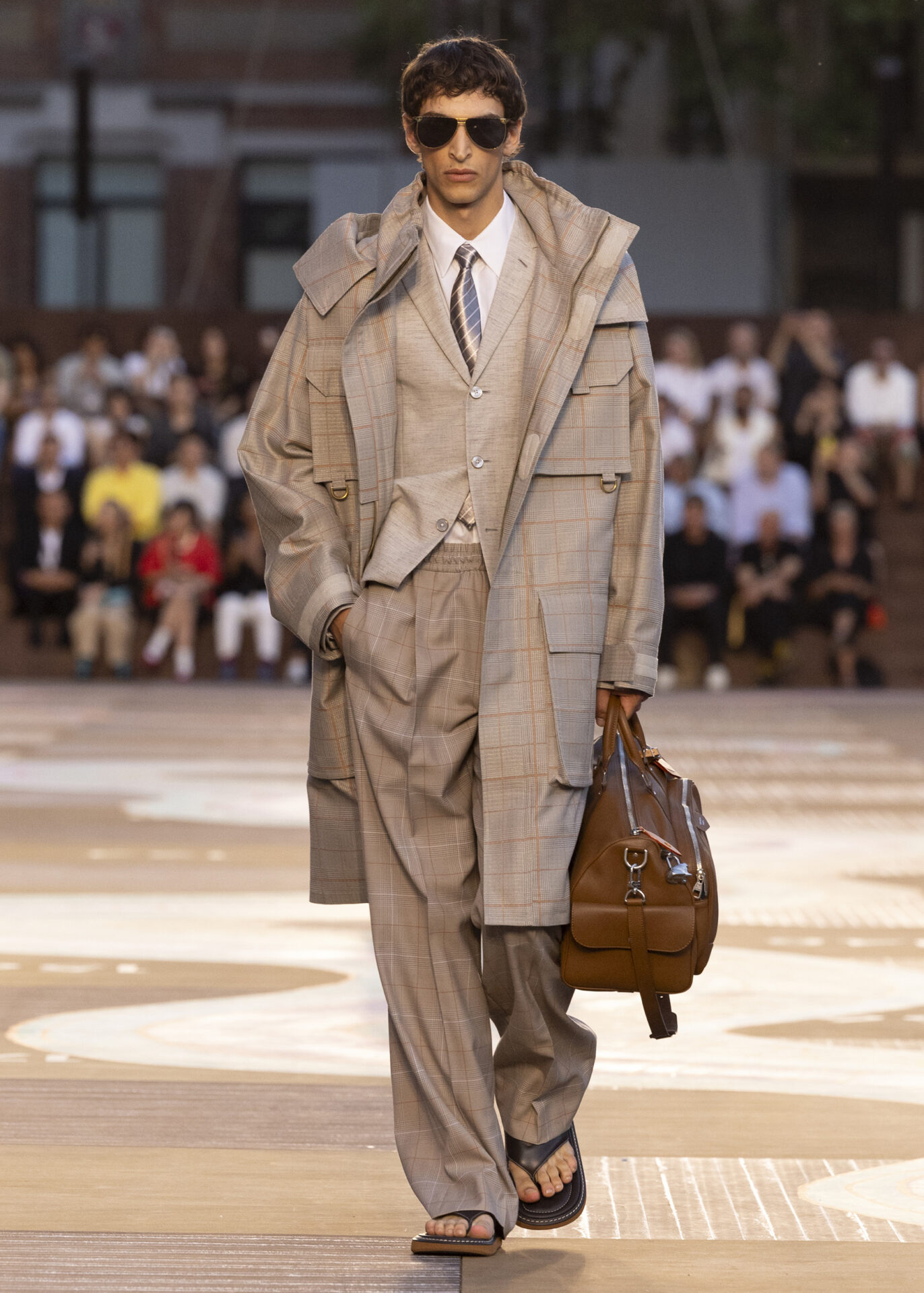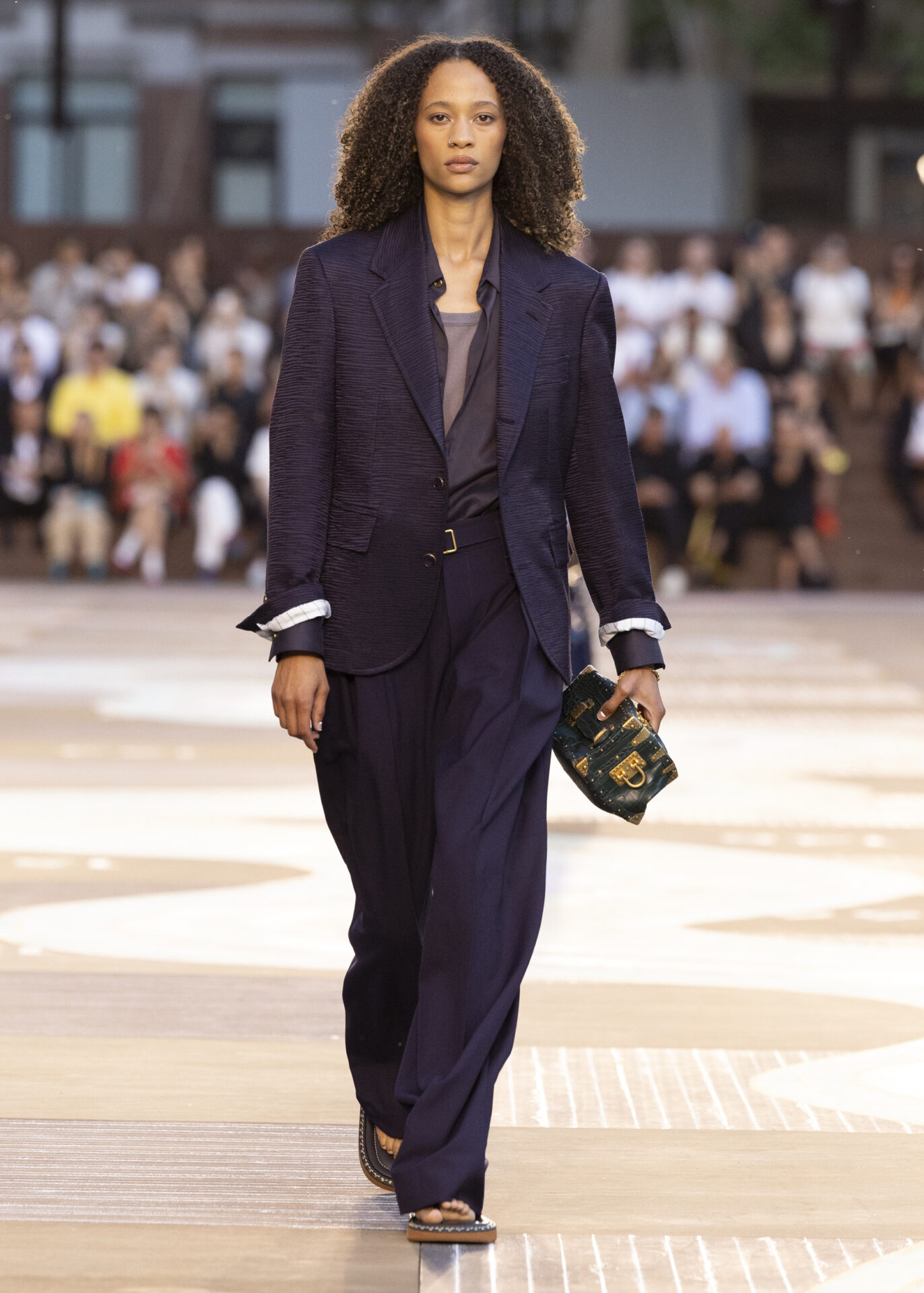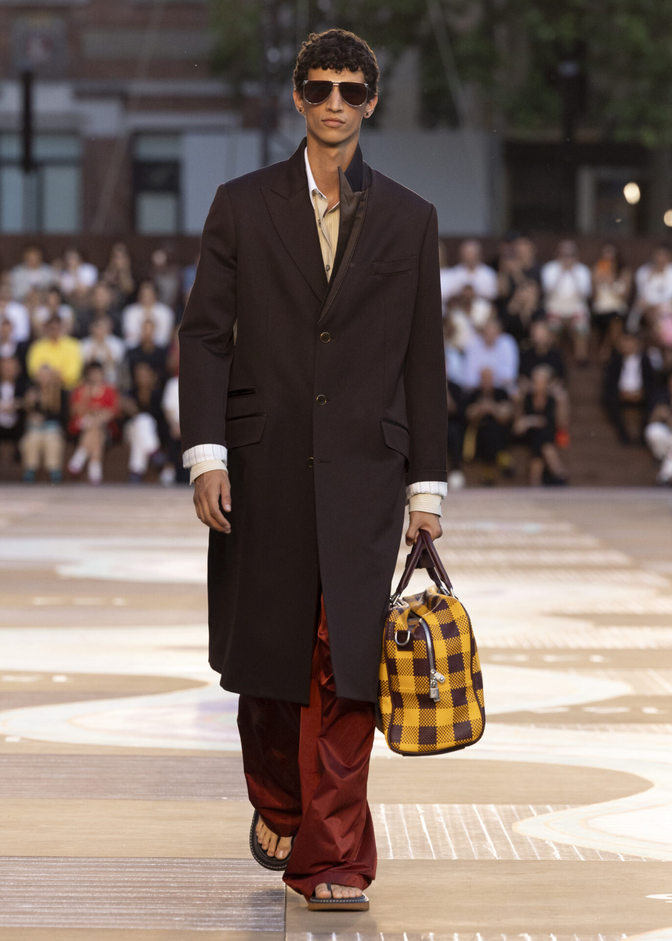 足元を飾るのは、ブランドの定番となったスニーカー「LV バターソフト」の新作や、ヒマラヤに着想を得たハイキングブーツ。そして今回新たに、左右兼用の超薄型シューズや、バッグの構造美を取り入れたボリュームたっぷりのビーチサンダルなど、革新的なフットウェアも登場した。