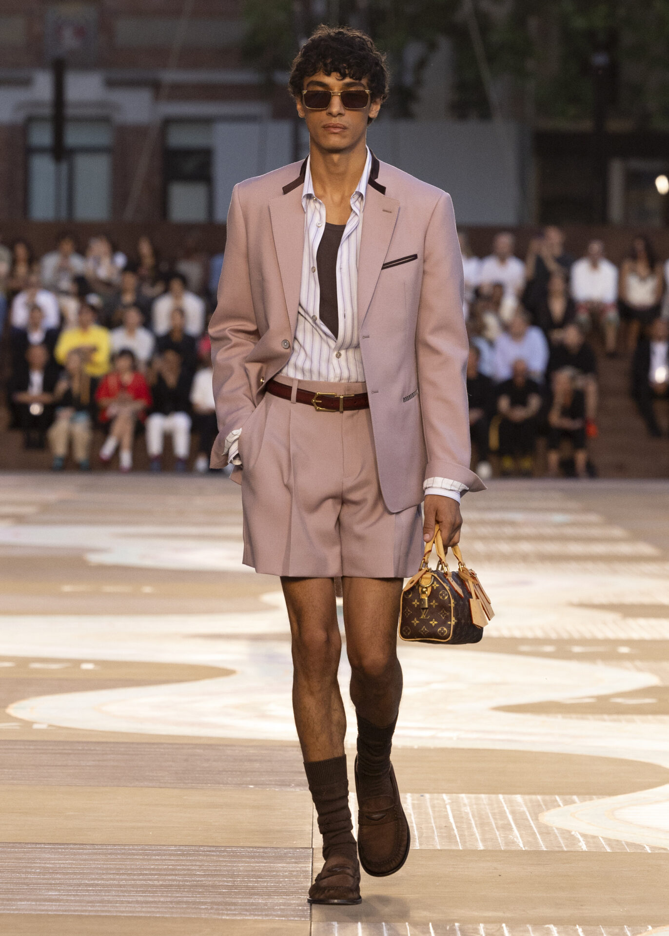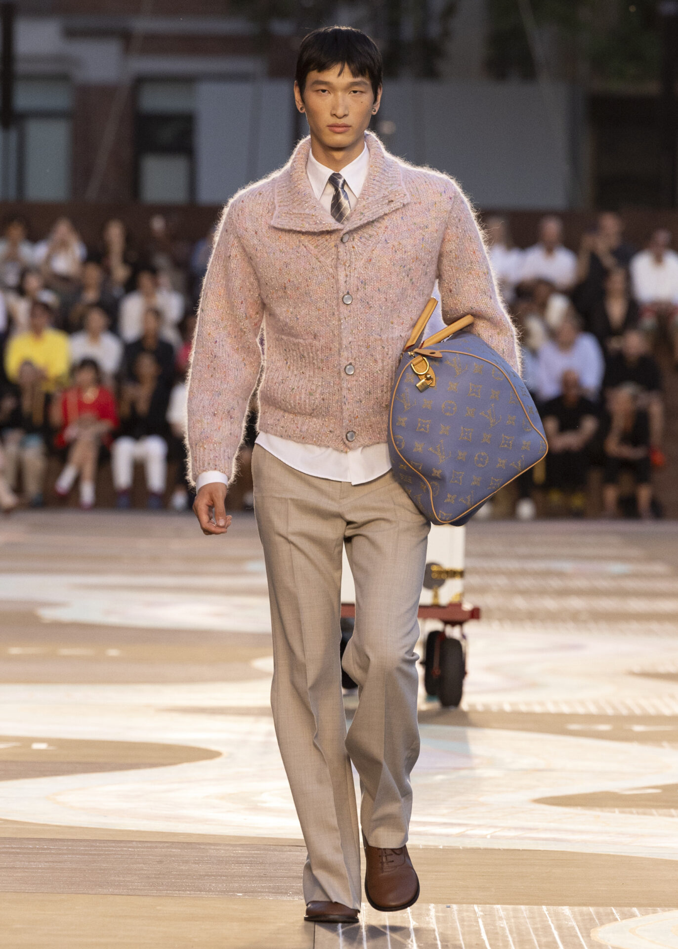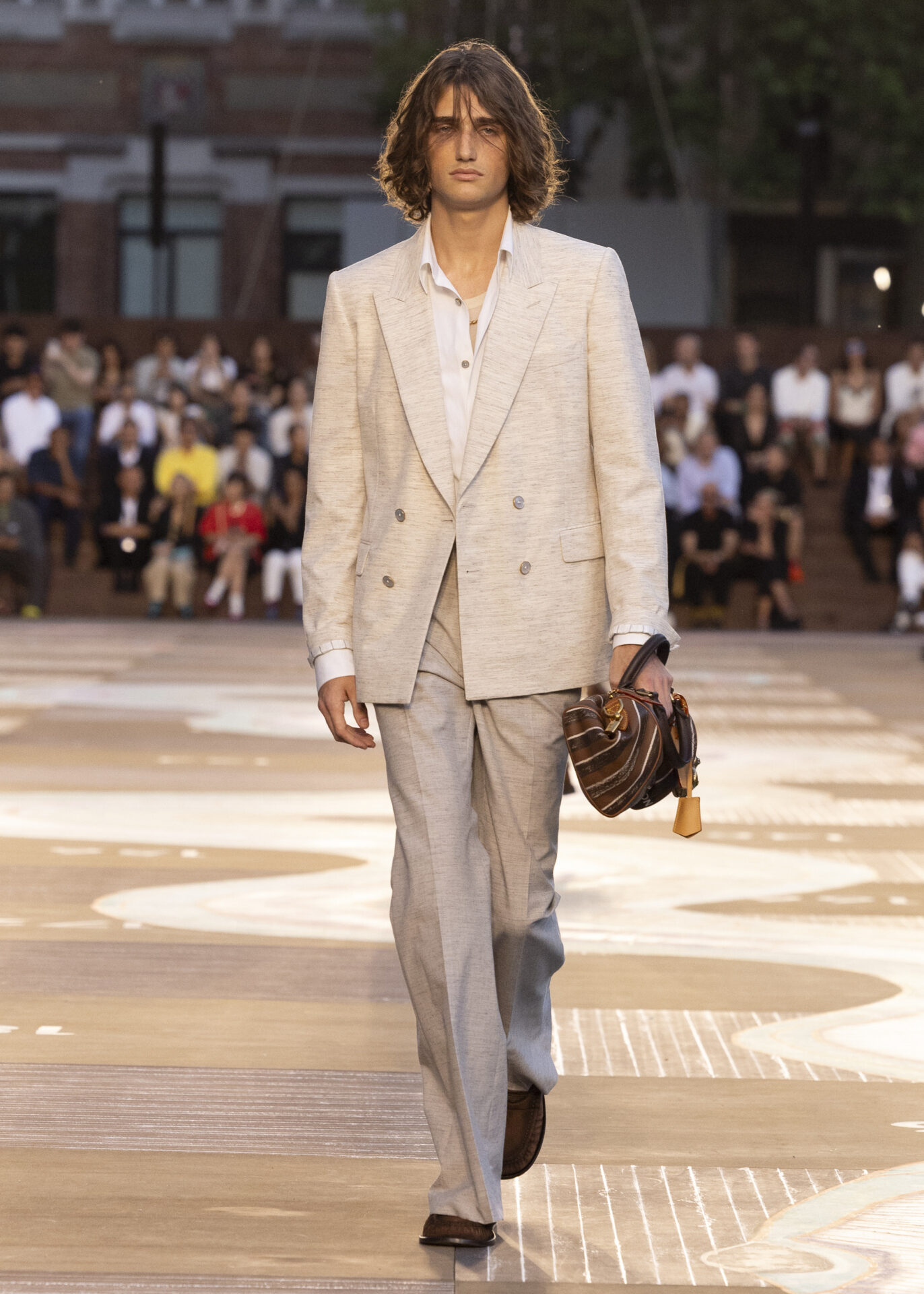 ファレルによるオリジナル・サウンドトラックには、ザ・ドリーム(The-Dream)との共作曲、Clipseの楽曲(ファレルらしさが感じられる選曲だ)、さらにドーチー(Doechii)とタイラー・ザ・クリエイター(Tyler, The Creator)の新曲「Get Right」が収められている。これらの音楽に彩られ、LOUIS VUITTONは “ダンディ・ワードローブ” の世界観をさらに広げるコレクションを発表した。