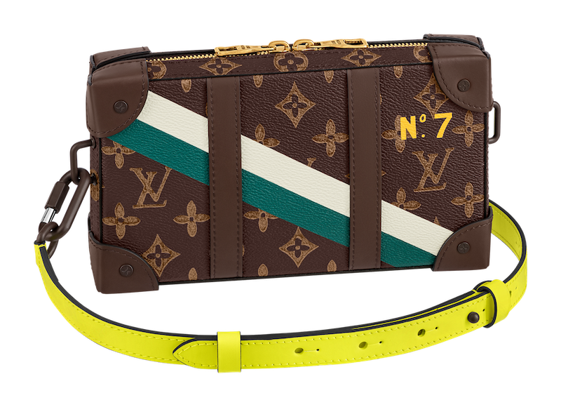 丸みを帯びたシェイプとレザーストラップで仕上げた「ホイール・ボックス」は、1905年にリムジン用にデザインされた伝統的な「丸型ドライバーズ・トランク」を想起させるディテールが特徴。モノグラムはほかに、 小ぶりなルイ・ヴィトンのトランクを模し、財布やボディバッグとして使える「ソフトトランク・ウォレット」と、不規則なパターンを配したモノグラムキャンバスを使い、ヴィンテージ風のキャンバス素材にグラフィカルな2つの「N°7」の文字などを添えた「ポシェット・ヴォワヤージュ MM」を用意した。