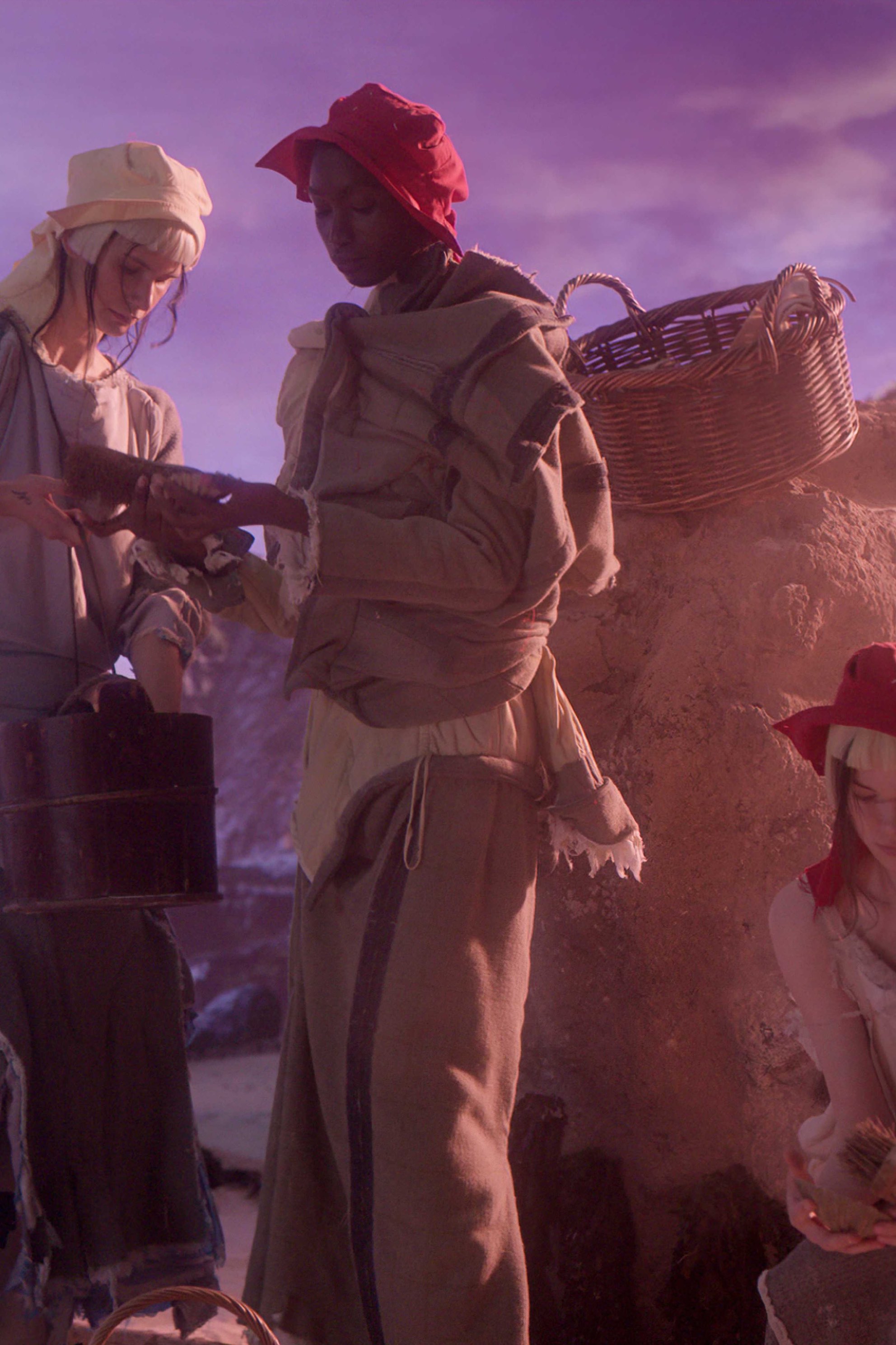 オリビエ・ダアン監督による’A Folk Horror Tale’は、最新のフラスタム(frustum)カメラを使ってパリのスタジオで撮影された。LEDスクリーンに、フォトリアリスティックな3Dの背景をカメラの視野範囲に取り込み、リアリティーのある架空の世界(錯覚)を生み出すテクノロジーを駆使した撮影では、18×6.5メートルのフランス最大級のLEDスクリーンが使用され、3Dイメージライブラリーからの画像をはじめ、スキャンしたリアルな風景写真、リアルタイムテクノロジーを用いて、視覚効果を作り出した。オランダの絵画にインスパイアされたライティングも印象的だ。