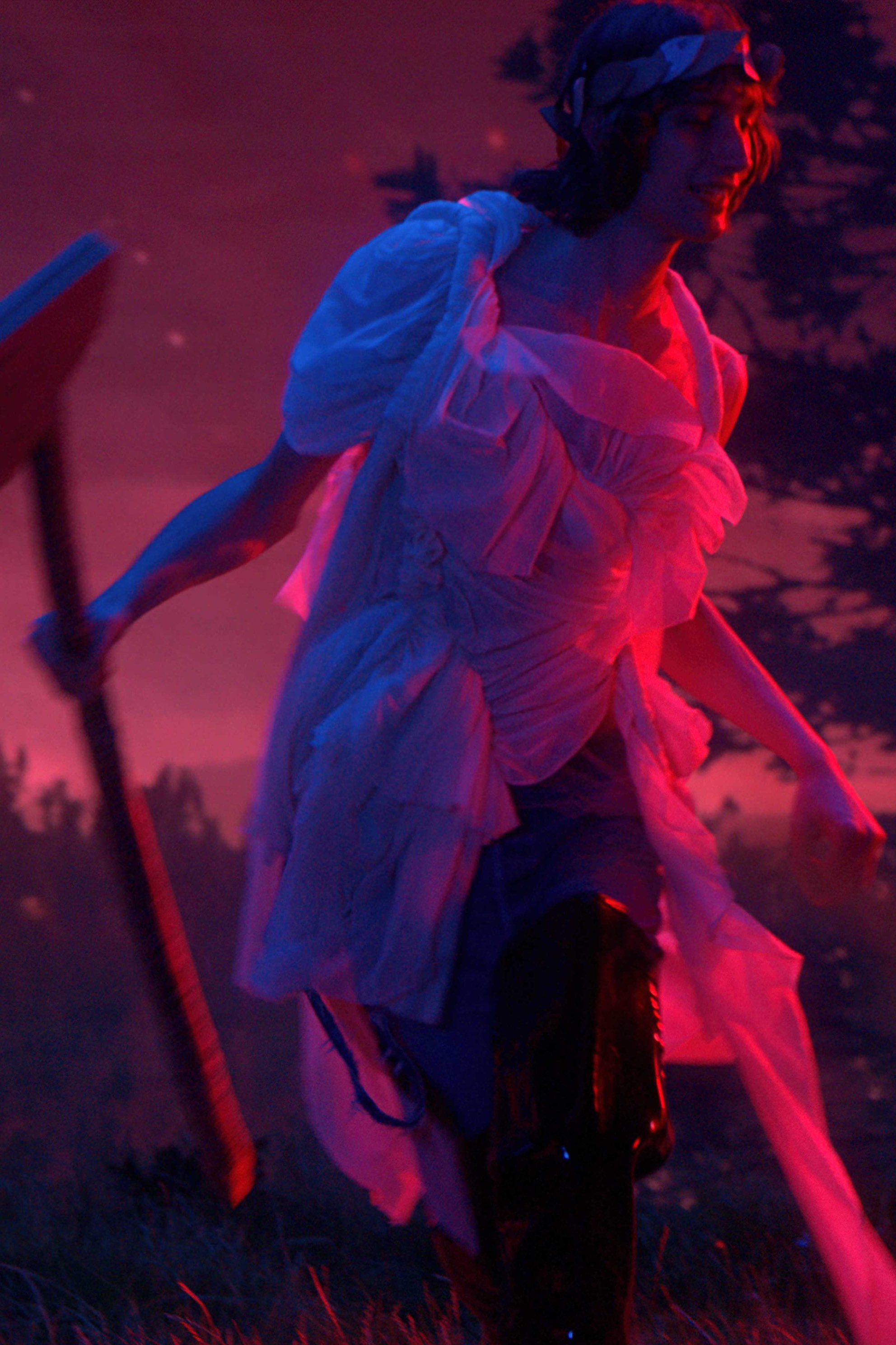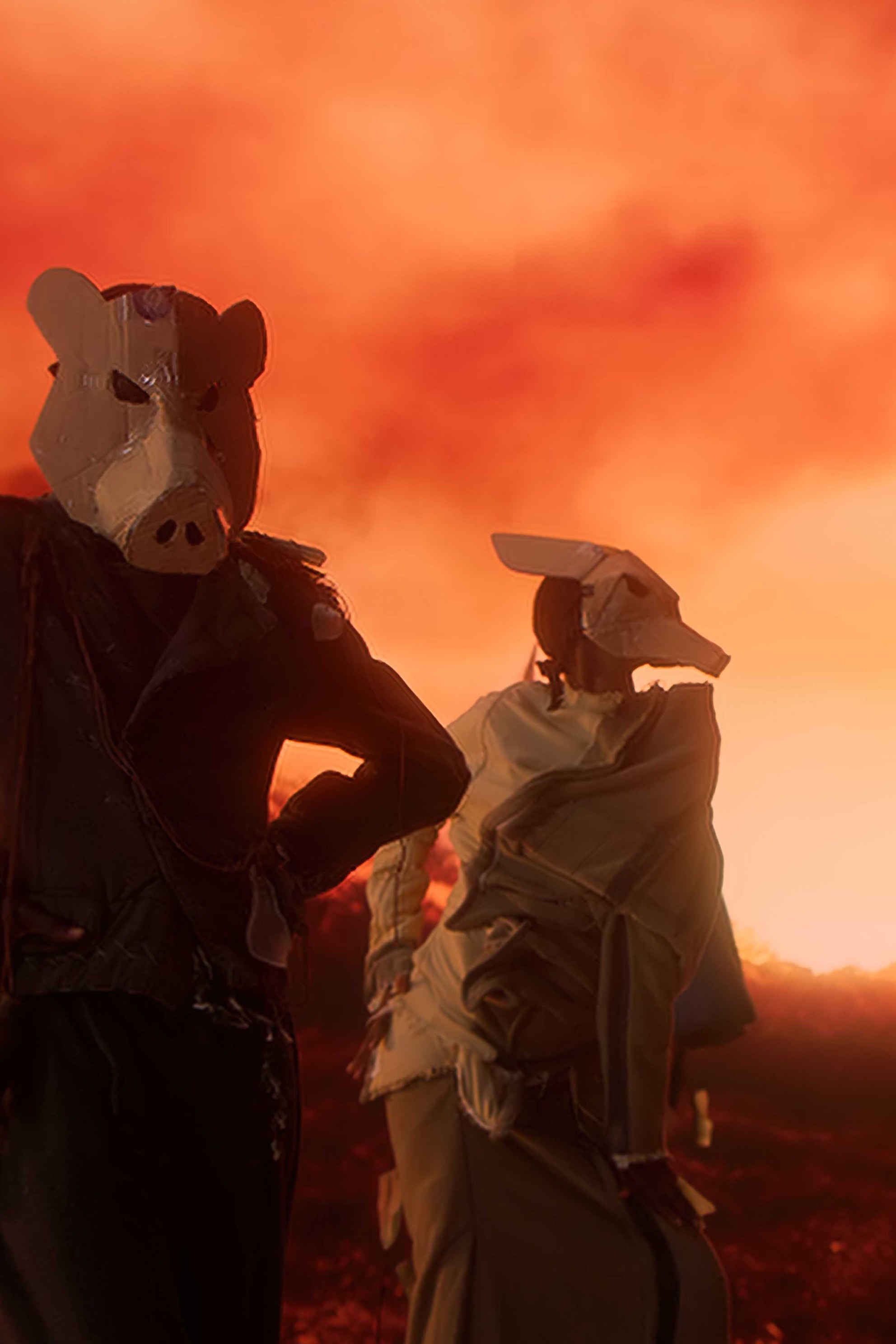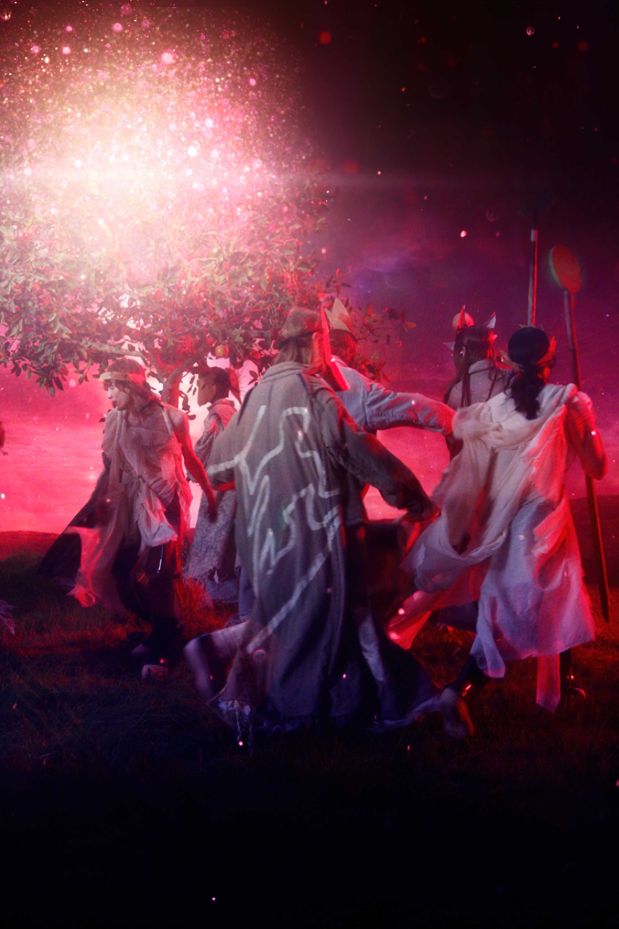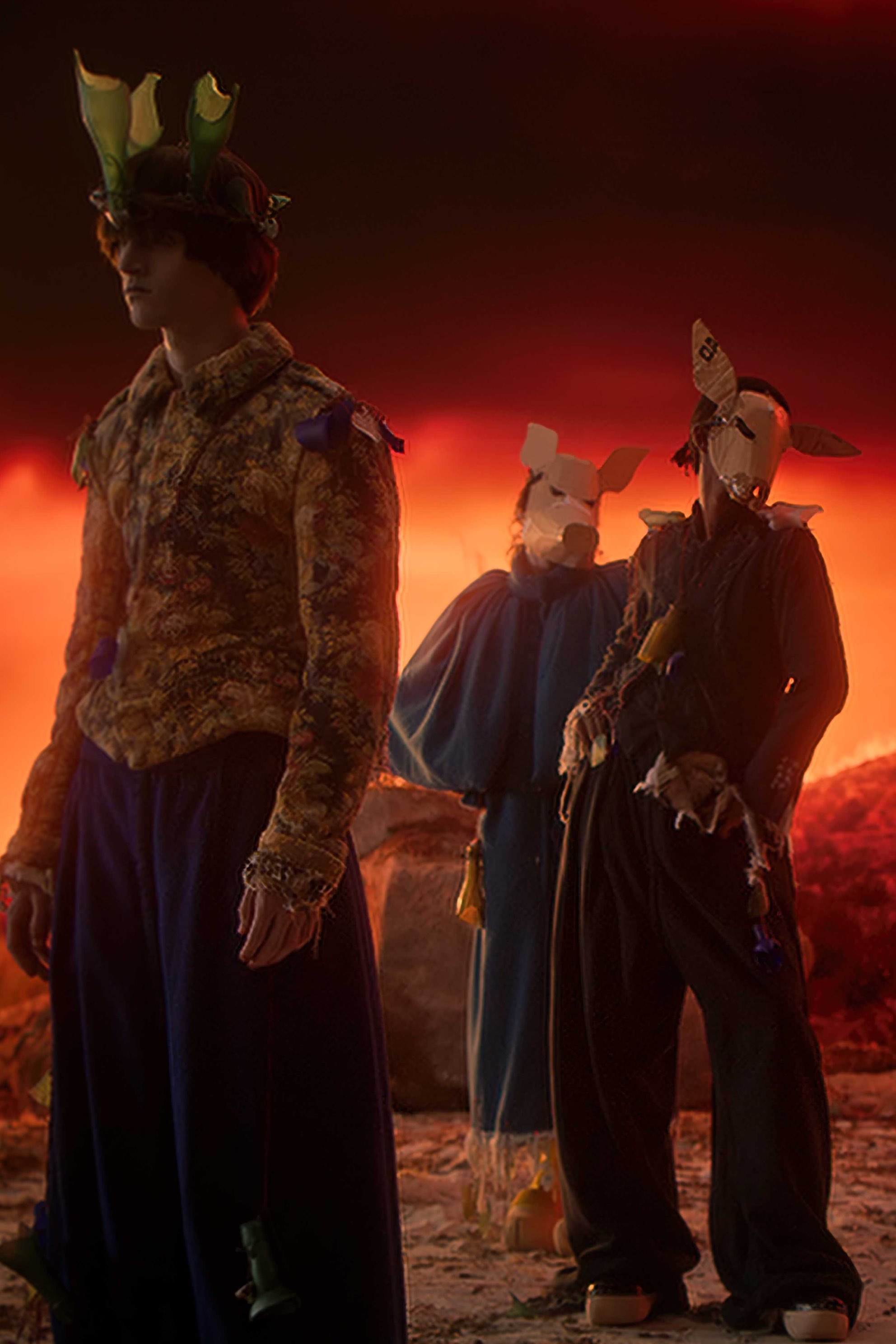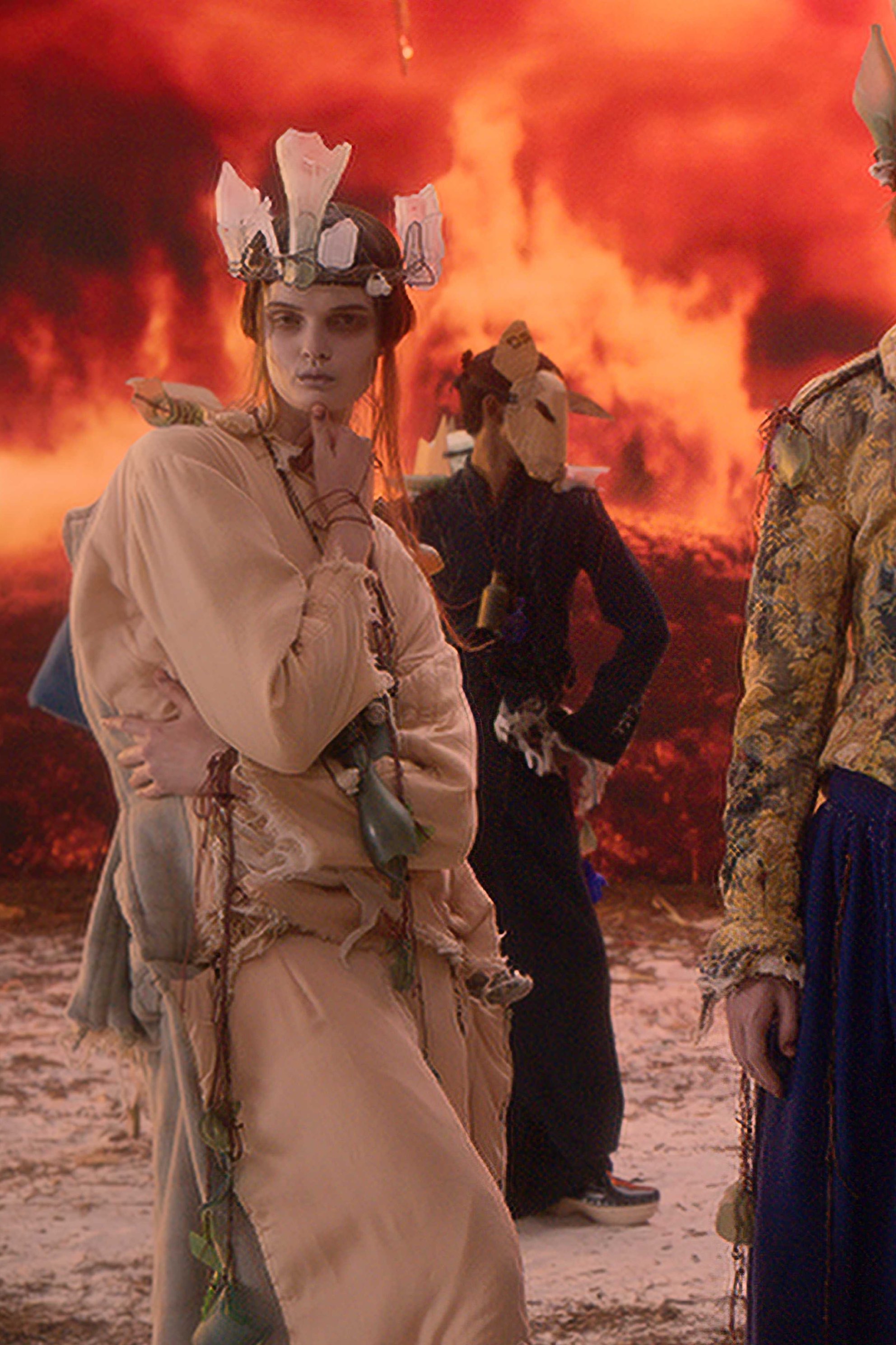 コレクションフィルムは、オリビエ・ダアンが監督、脚本をジョン・ガリアーノが手掛け、本能やコミュニティー、変革を描いた。コレクションには「共生」の概念を織り込み、ガーメントのライニングのモチーフやニットの刺繍、ブーツの装飾などで表現。ヴィンテージやデッドストック生地で作られたガーメントは、 8〜12倍にスケールアップし、サイズを圧縮するために酵素を用いたエンザイム加工とストーンウォッシュ加工で新たなシェイプに変形。摩滅で本来の色を露わにしたという。
