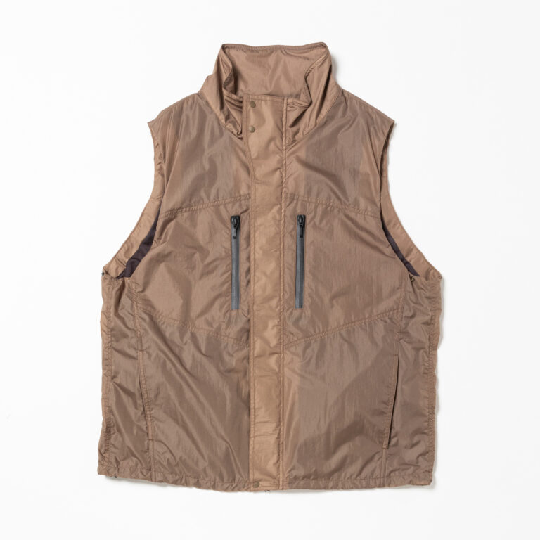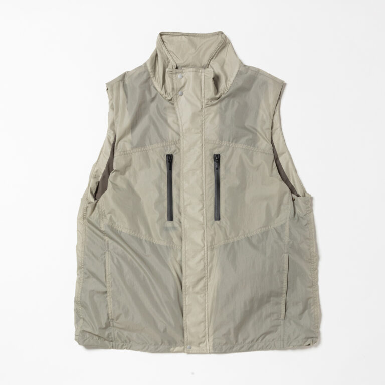Working Outfit SAMUEは、伝統的な作務衣のデザインを採用してスナップボタンを採用。袖口と裾はルイス仕上げで、衿元のボタンにより襟を立てて着用することもできる。カーゴスラックスは、テーパードを緩やかにかけ、カーゴパンツのディティールを落とし込んだモデル。前面のタックや素材感で上品に仕上げ、ウエストはボタンタブで調整可能。サイドから全面にかけてツバ部分をカットすることで、フードを被った際にもツバが干渉せず、視界を遮らないようデザインしたスプリットハットも展開。