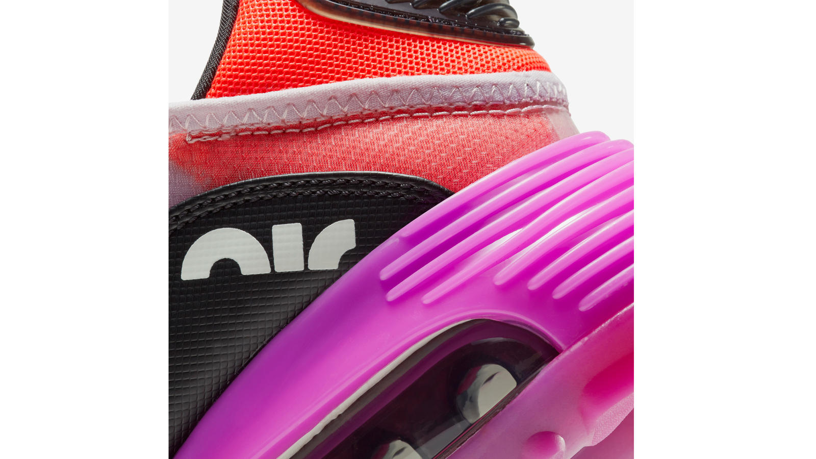 ベースモデル「Nike AIR MAX 90」の特徴を活かしつつ、近未来を連想させるデザインを落とし込んだ同モデル。オレンジを中心としたアースカラー、鮮やかなライラック、オーロラをイメージしたグリーンでそれぞれカラーリングし、エネルギッシュな印象を取り入れた。
