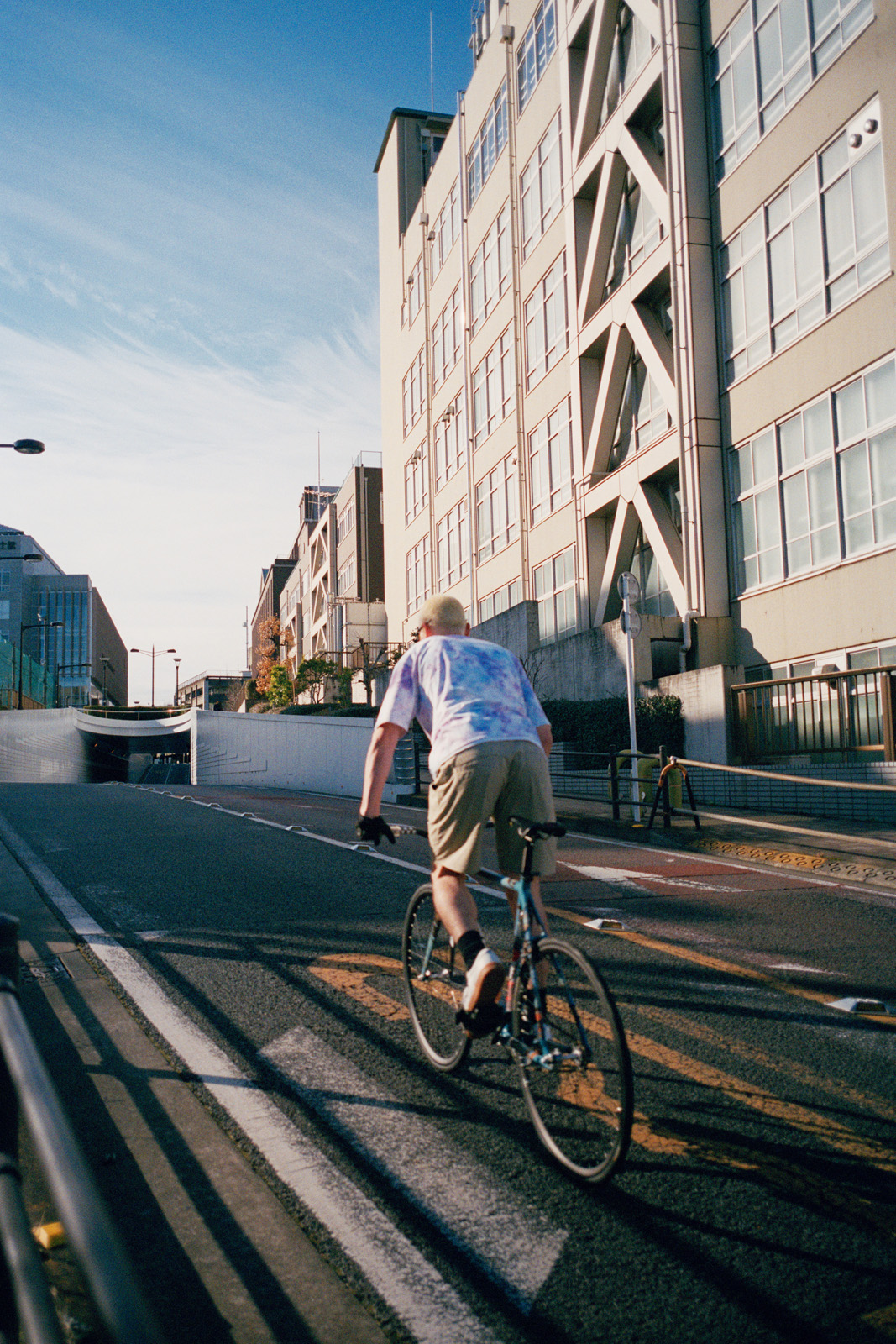 これからの季節に活躍するドライタッチのロングスリーブTシャツは、袖にオークリーのロゴグラフィックがグラデーションカラーでプリントされている。アンクル丈パンツと同様の、肌に張り付かないドライな質感のコットンツイルショーツを合わせたアクティブなコーディネート。ショーツ右後身頃にも、自転車走行を考慮した便利な片玉縁ポケット付きだ。自転車に乗って友達に会いに行き、リラックスした時間を過ごす休日スタイルに。
