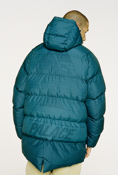 今季は、シェルとダウンが別々に着用できる3WAY仕様の「GORE-TEX(ゴアテックス)」コートや、カモ柄のリフレクターダウンジャケット、などのアウターを展開。そのほかに、ポストカードから着想を得た「Love Letter」シリーズのフーディー、シャツ、デニムジャケット、パンツや、英国らしい赤と黒のチェック柄のジップアップニット、フロントニーのパネルジーンズやカーペンターパンツ、GORE-TEXや「Harris Tweed(ハリスツイード)」のキャップなどを取り揃えた。