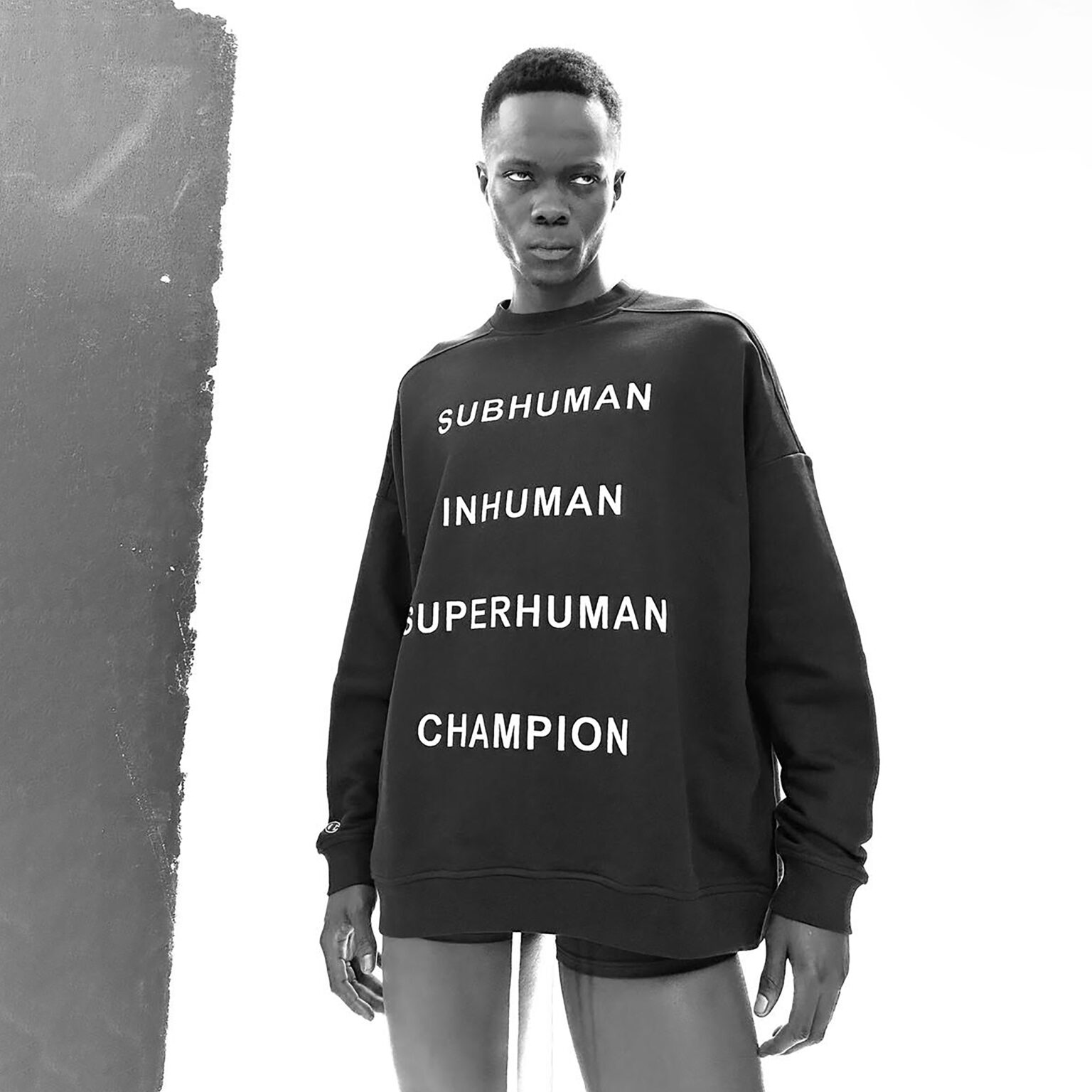 Champion × Rick Owens、コラボアイテム発売。モノクローム配色や構築的なシルエットを採用