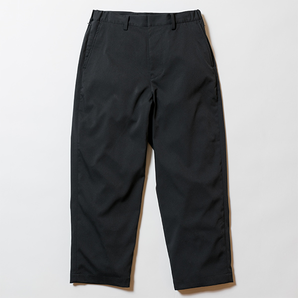 PWAは、変わった人、極端な人、独立した人の普段着を提案する新レーベル。多様な生活に対応する普遍的なタフさ、継続的に購入しやすい価格設定、履きやすさを条件に、ポリエステルを用いたパンツ2型を展開する。