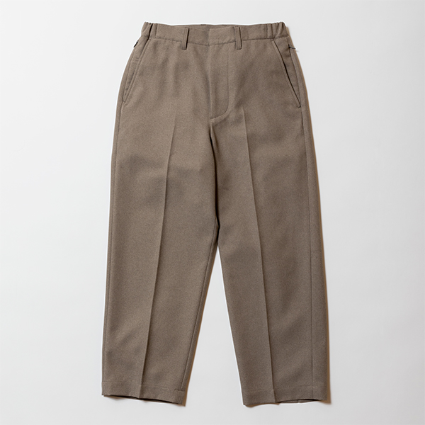 コットンライクなポリエステルを採用した「UNIHOME-01」は、軽量性や速乾性、引き裂きや擦れに強い耐久性の高さが特徴。「UNIHOME-02」は、ウールのような繊細な質感のファブリックを採用した。どちらもフロントのインポケットに目立たない「ハイド・ジップ」を配置。ハーフゴム仕様のウエストで、ベルトレスでの着用を可能にした。