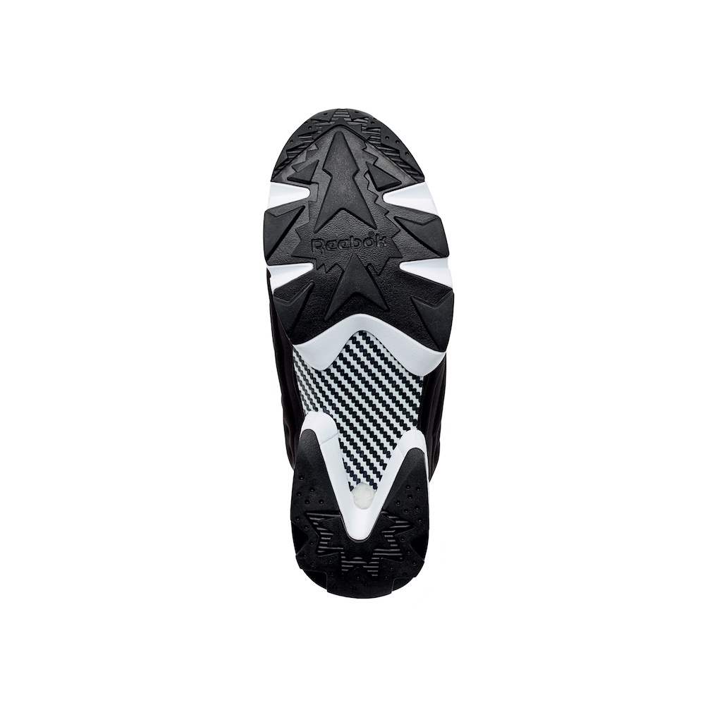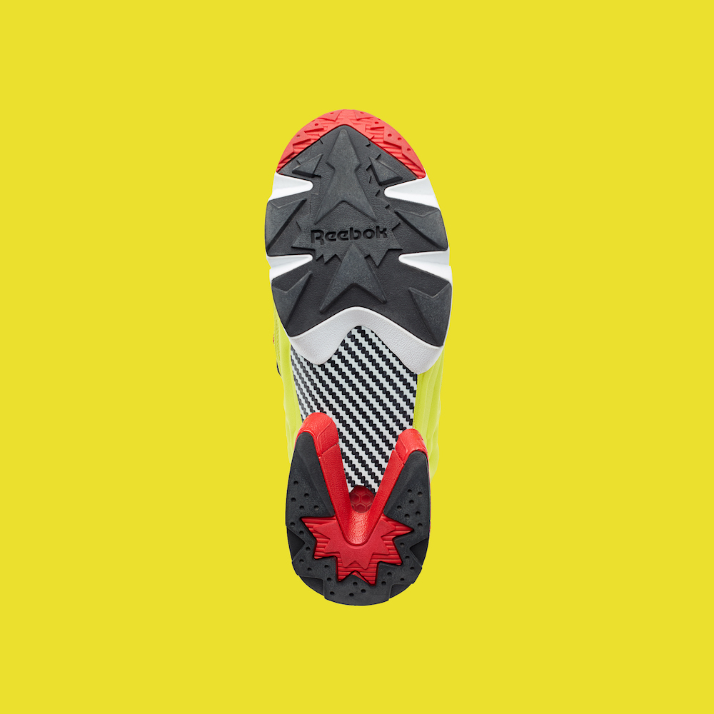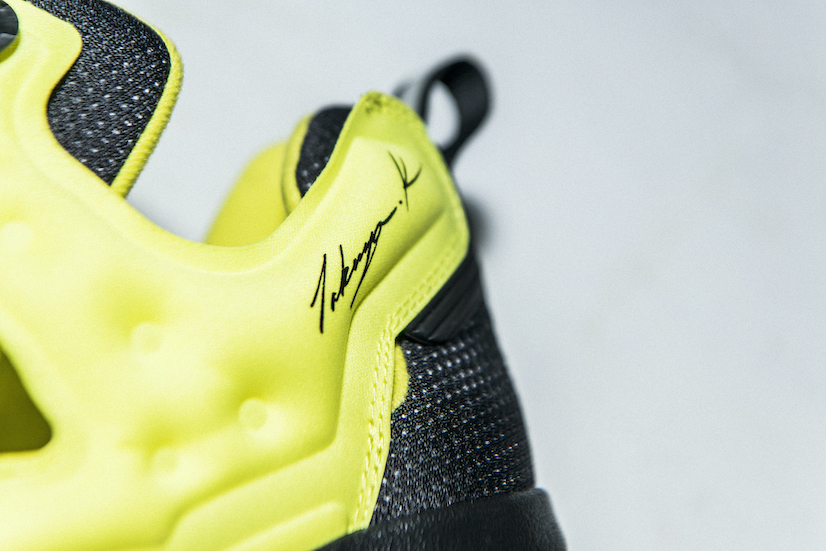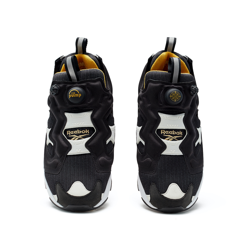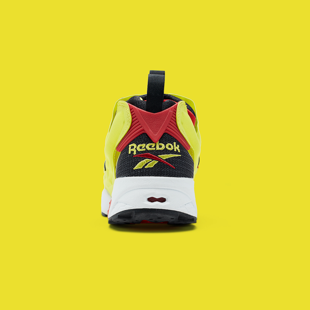 「Reebok 90s House」から生まれた日本エクスクルーシブモデル「INSTAPUMP FURY OG 90s House」は、2019年の春夏シーズンに、INSTAPUMP FURY25周年記念の一環として原宿で開催された、期間限定ミュージアム「Reebok 90s House(リーボック ナインティーズ ハウス)」での1シーンから着想を得て誕生した、日本限定モデル。様々なミュージシャンのジャケットデザインや、ファッションブランドのグラフィックも手がけるアーティストの上岡拓也が、Reebok 90s House開催期間中、イベント会場の壁にINSTAPUMP FURYのファーストカラーであるシトロンを描き、その描き途中(下地の黒いベースと特徴的な蛍光イエローのブラッダー部分)であるカラーリングをそのままデザインした。ヒール部分に上岡のシグネチャーが施され、インソールには今作のために上岡がデザインした「PUMP FURY」の文字をプリント。3アイテムで唯一の日本エクスクルーシブモデルとなる。