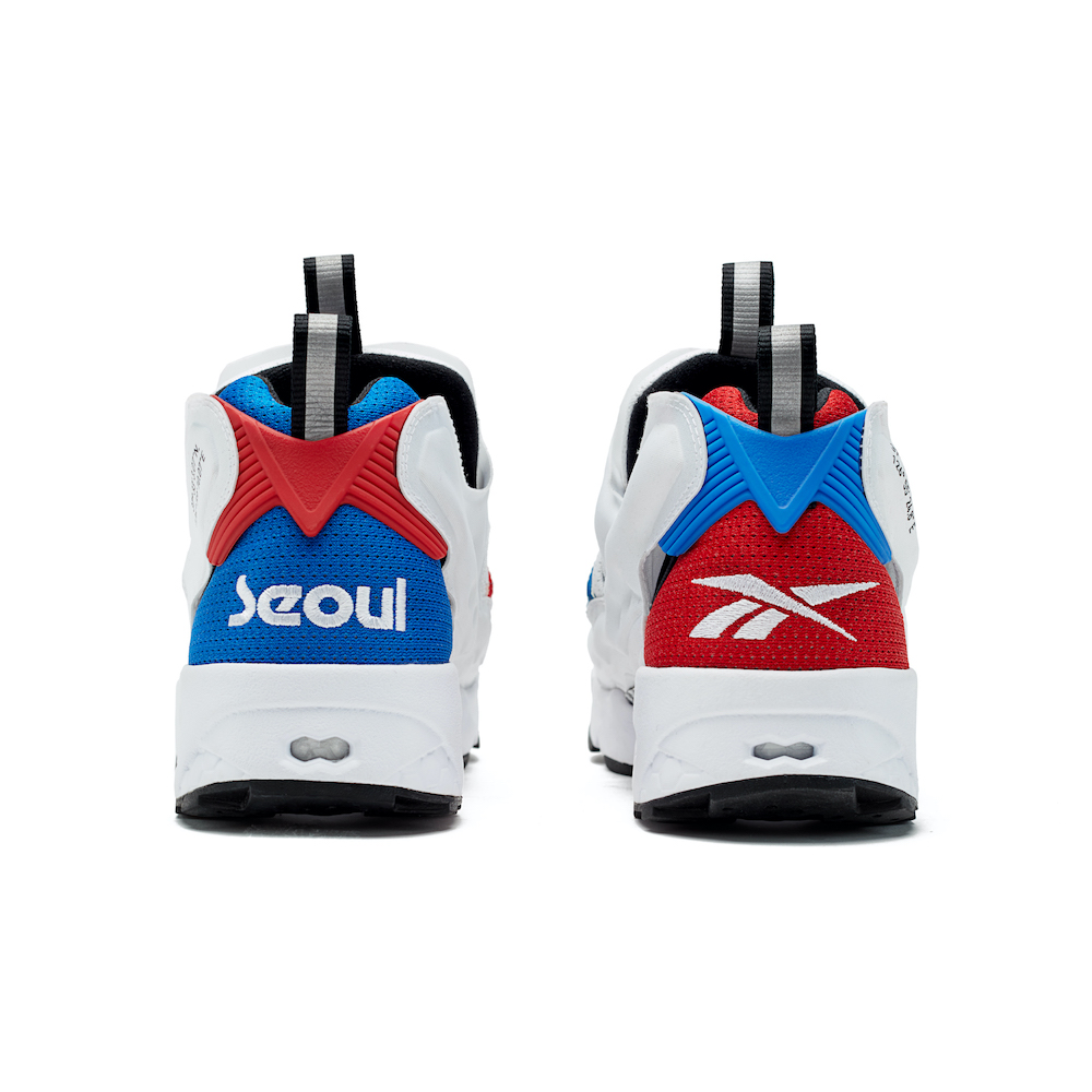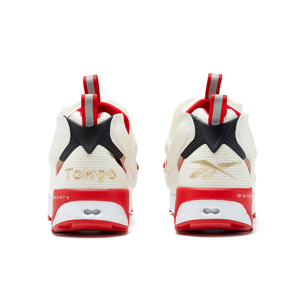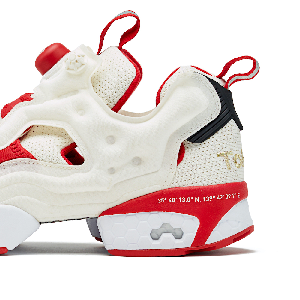 世界都市をテーマにしたモデル「INSTAPUMP FURY CITY(インスタポンプフューリー シティ)」は、東京、大阪、上海、ソウルといったアジアの都市から着想を得てヒール、インソールなどシューズのディテールにそれぞれの都市のファッションやカルチャーを反映したモデル。左足のポンプボタン部分には、コンパスのモチーフをデザインし、ヒール部分には各都市名の刺しゅうを施している。