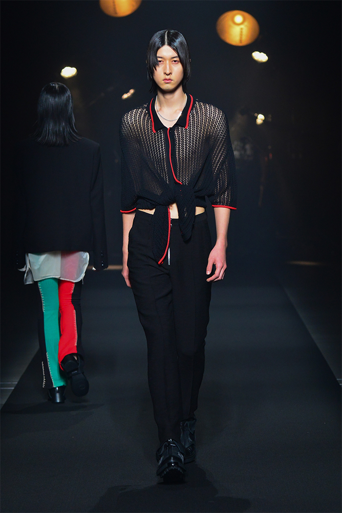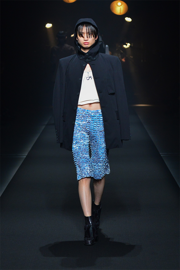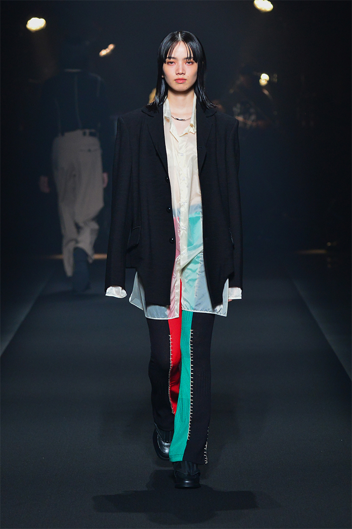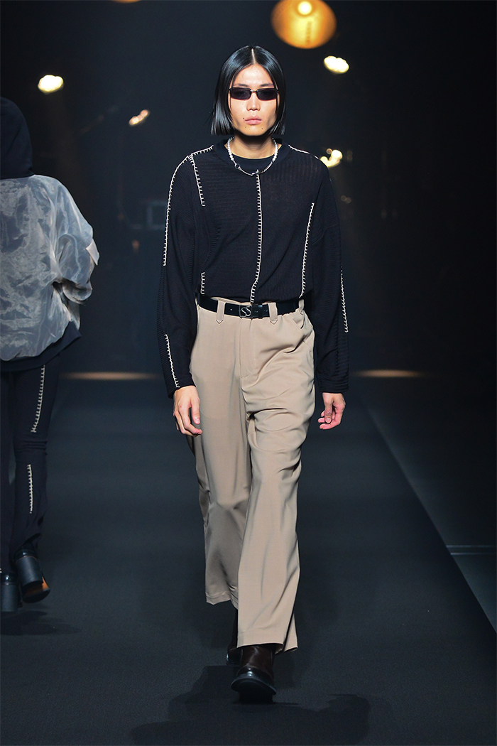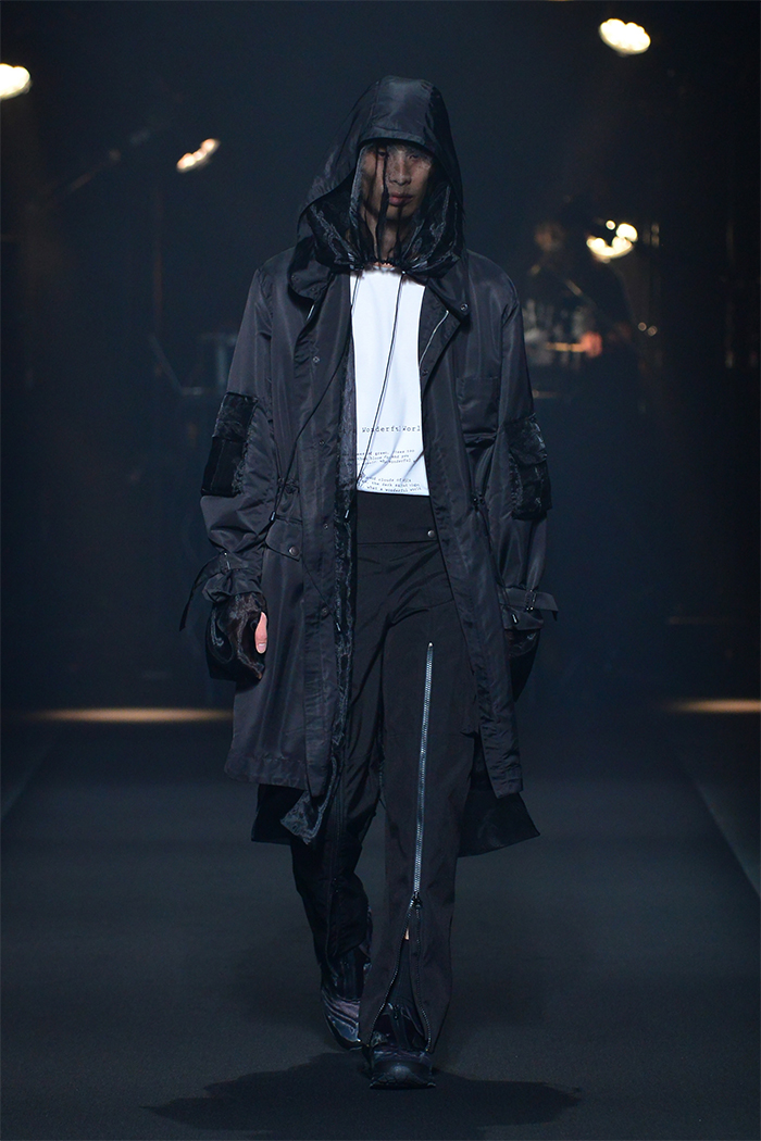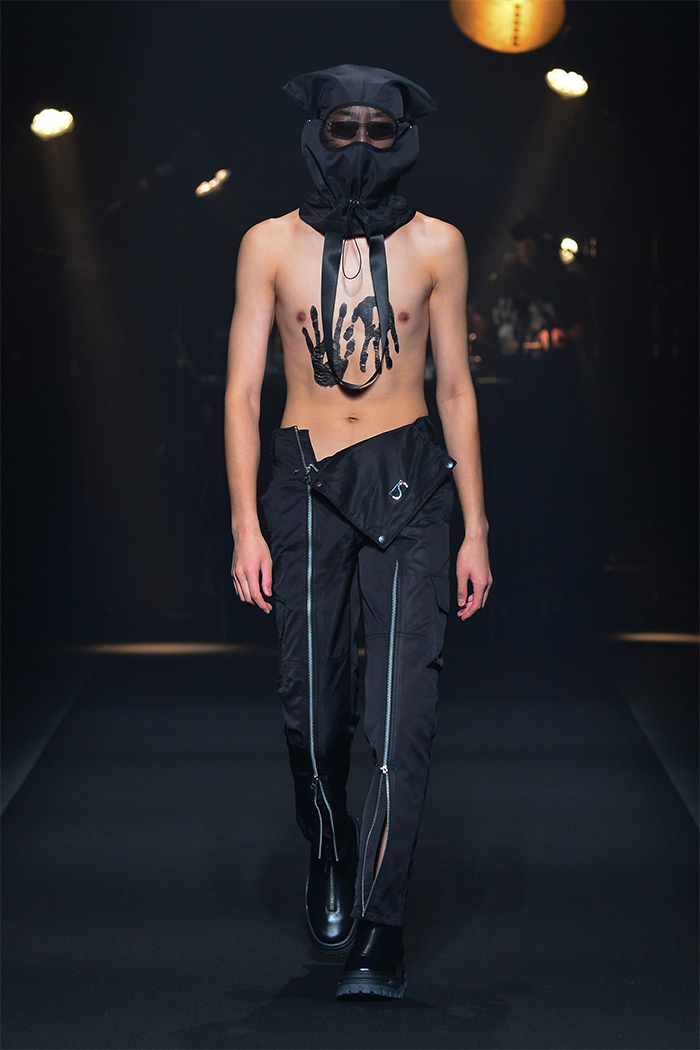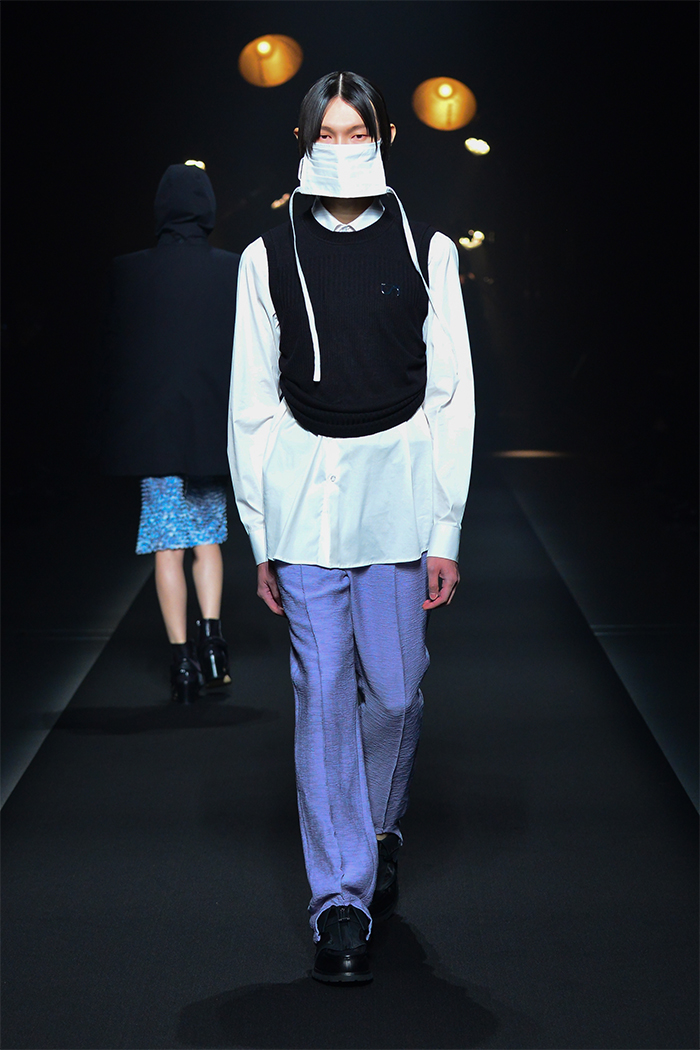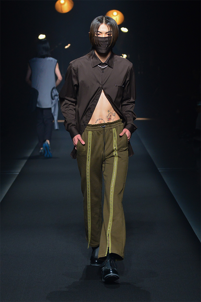 「FINAL HOME(ファイナルホーム)」の元デザイナー須田伸一(SDADIO)とのコラボレーションでは、「美しくサバイブする」をコンセプトにアイテムをデザイン。フーディ、オーガンジーの裏地が顔のプロテクターにもなるモッズコート、取り外し可能なマスクを装着したシャツ、防災頭巾を着想源としたトートバッグを共同開発した。
