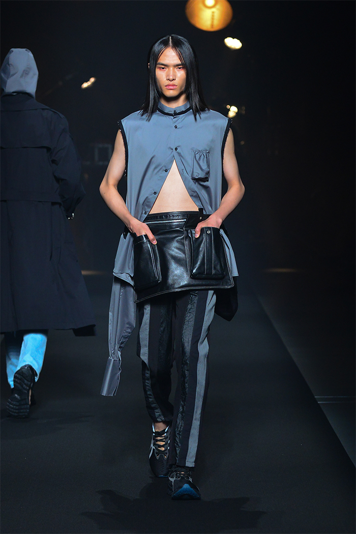ブランドでストックしている生地を採用したパッチワークなど、アップサイクルアイテムも展開。「ASICS(アシックス)」とのスペシャルプロジェクト用に開発したスパッツは、レザーを用いて再解釈した。
