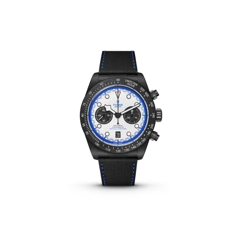 フランス海軍が初めて採用したTUDORのブルーのダイバーズウォッチから着想を得た、「The Colour of the French Navy(フランス海軍の色)」を象徴する、マットな質感のネイビーブルーをまとったモデル。フランスの伝統的な技法により生まれたファブリックストラップもネイビーブルーに彩られている。