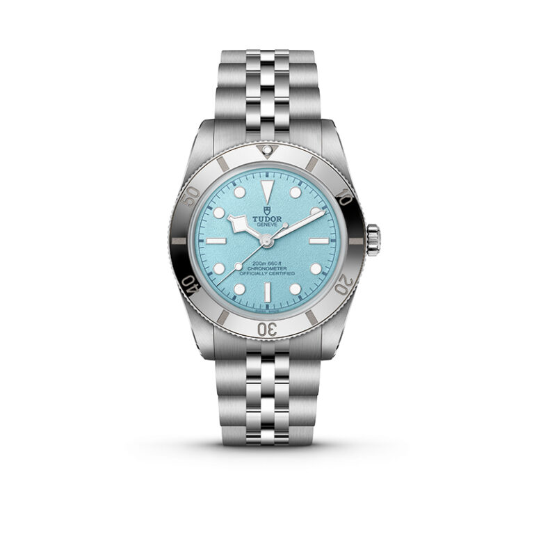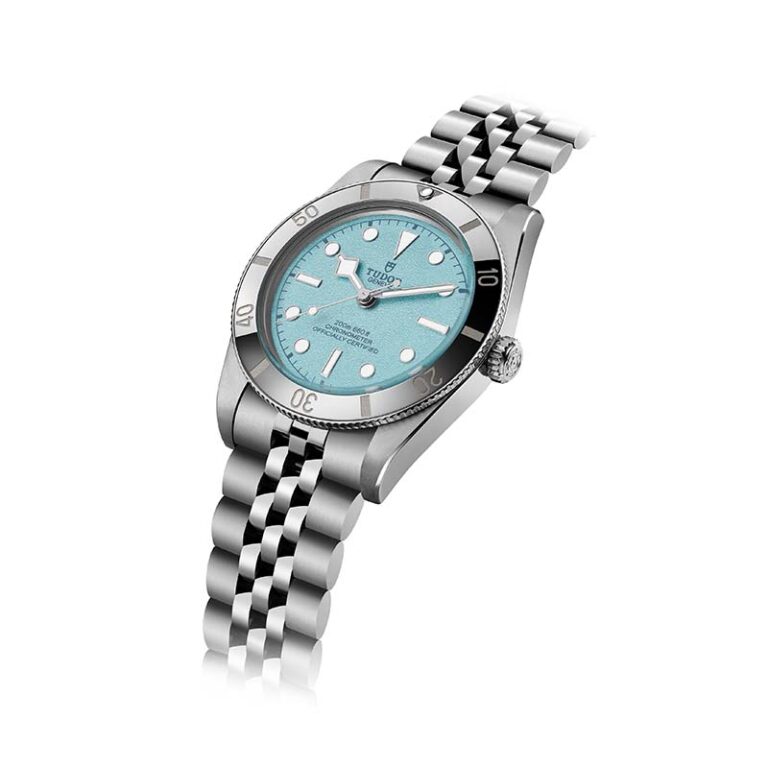 視認性の高いダイアルと、ケース径は小ぶりな32mmからのサイズ展開。先端にスクエアがついた特徴的な「スノーフレーク」針の機能美に洗練性が加わったブラックベイ コレクションからは、ブラックベイ 32 / 36 / 41。それは、歴史への敬意が込められた青。ラッカーで艶やかに仕上がったダイアルの繊細なブルーは、自然光や室内の照明など、様々なシチュエーションでそれぞれの表情を変えて見せる。