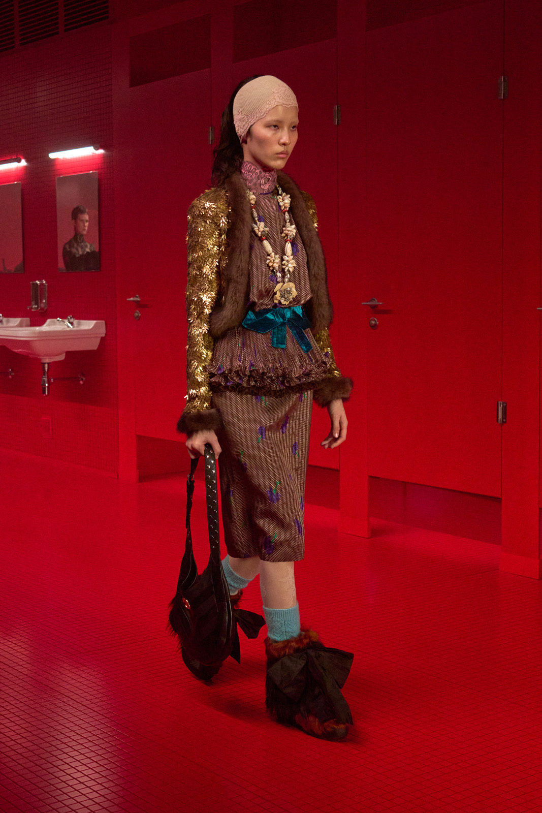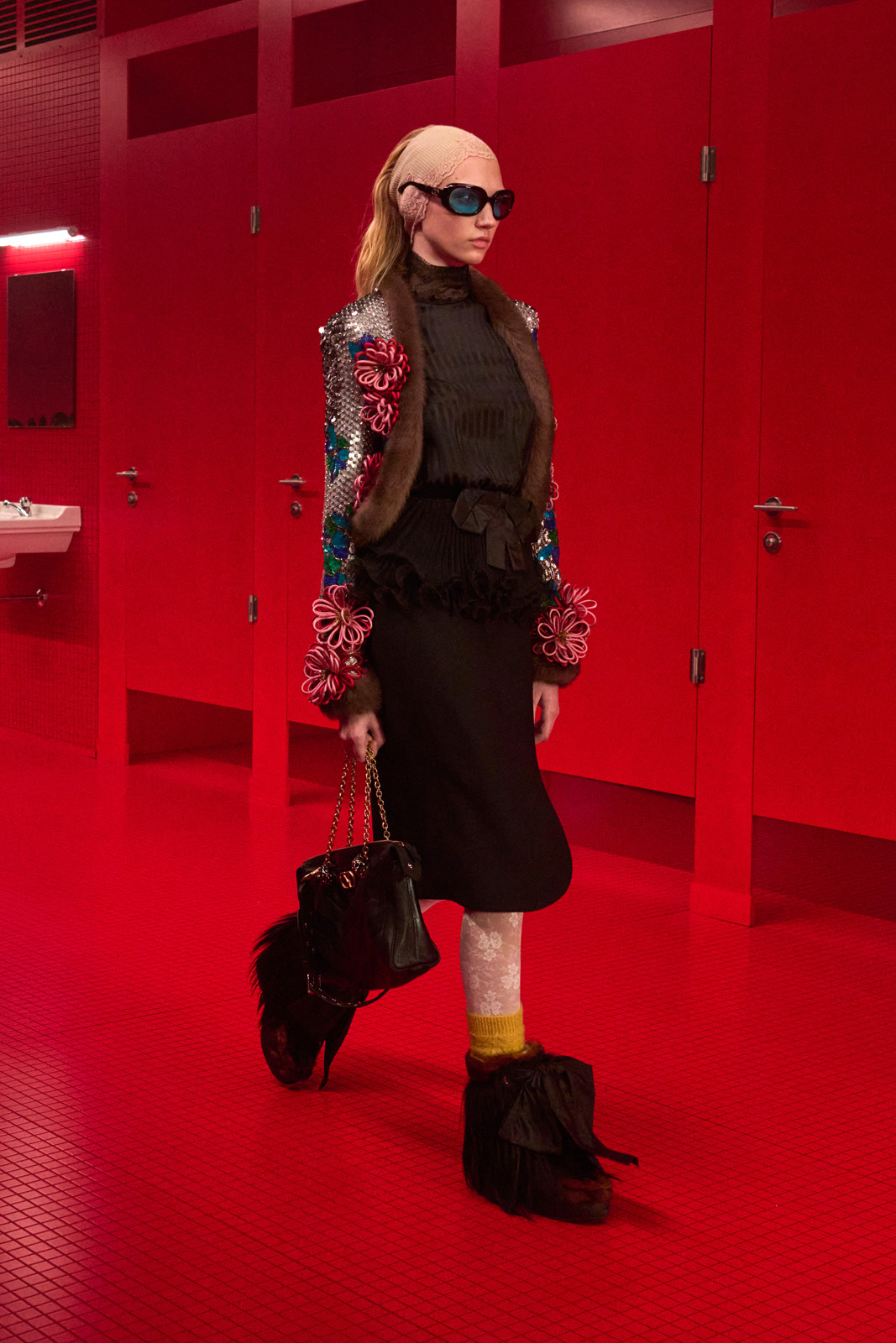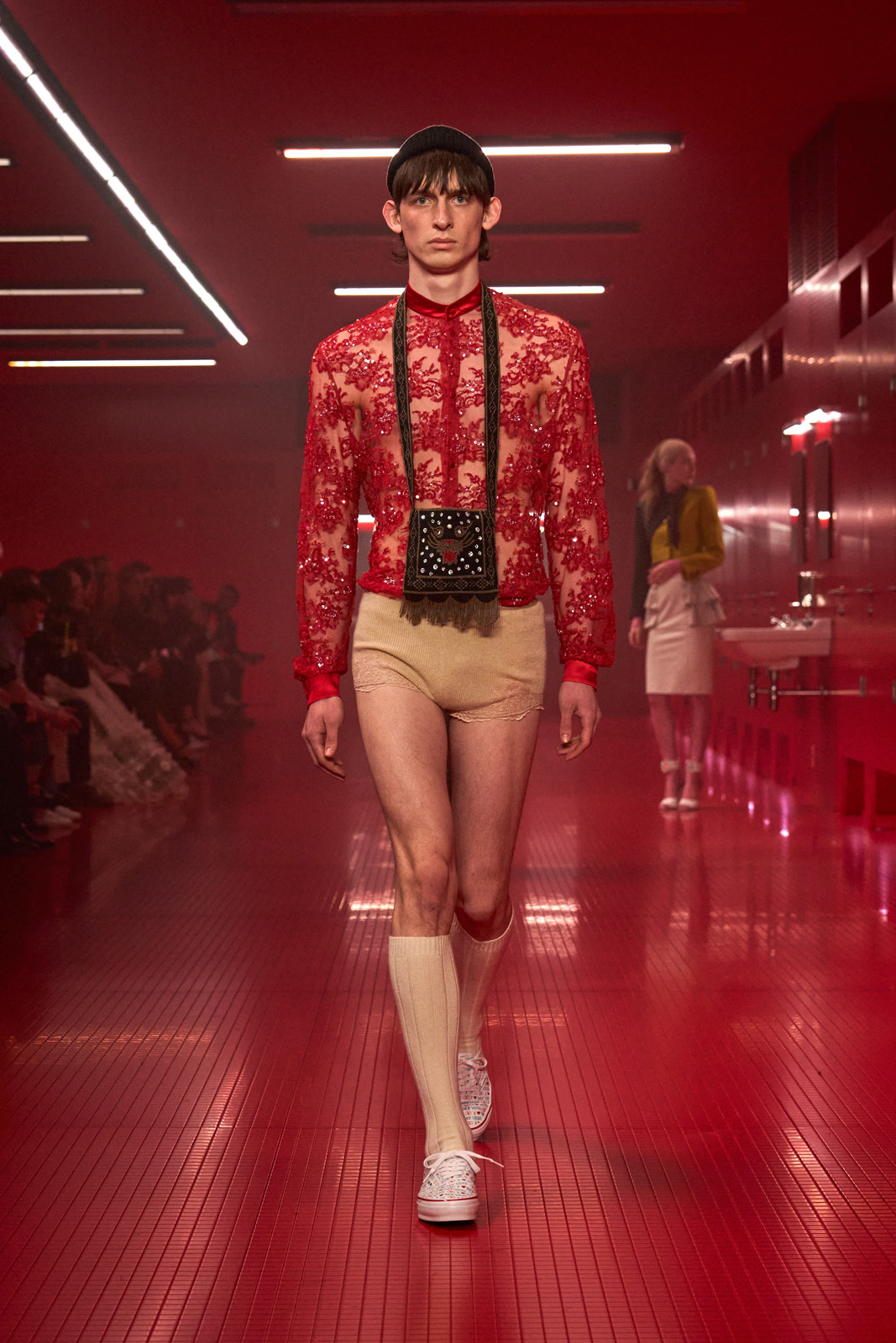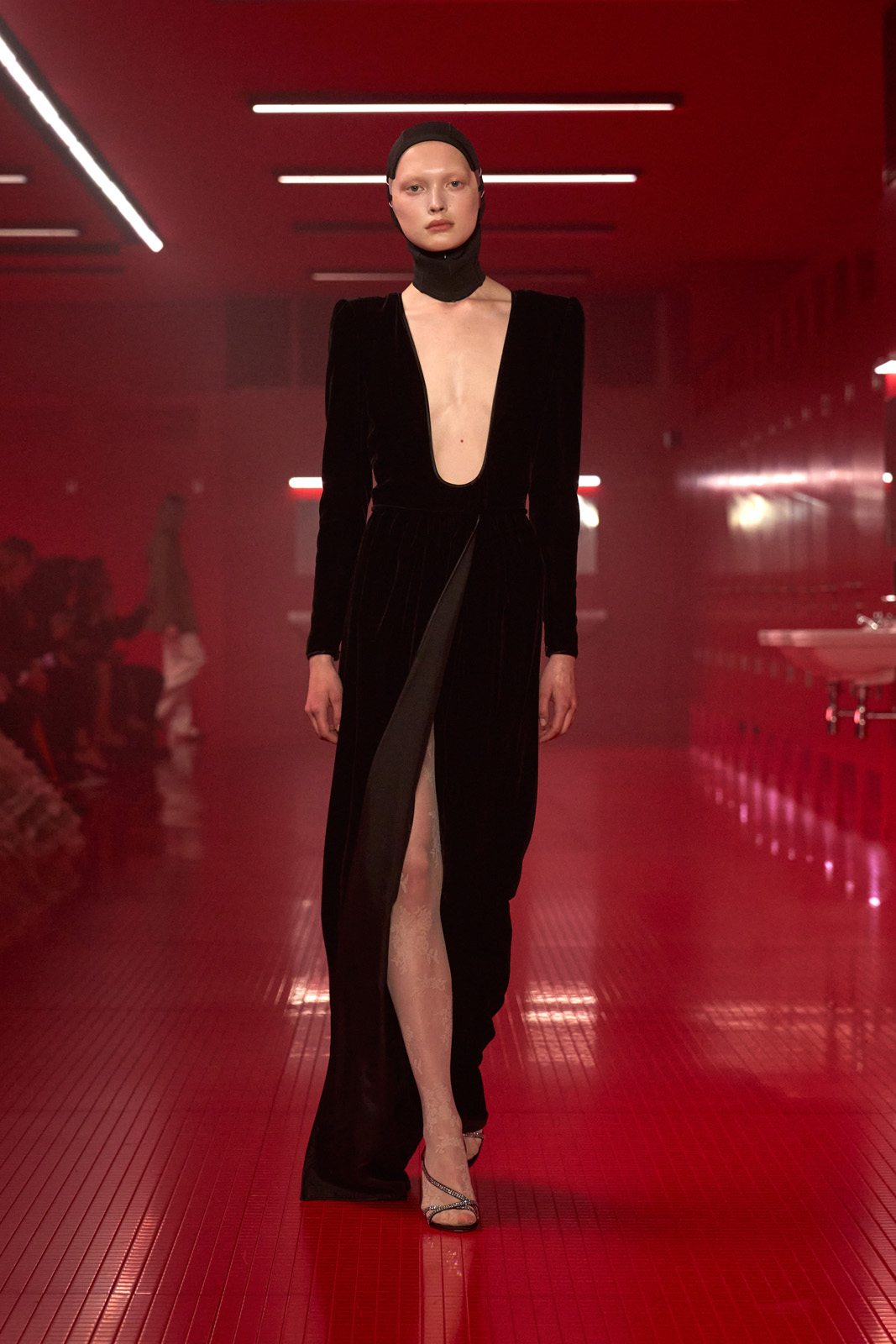 舞台となるのは、ヴァレンティノ レッドに染め上げられた公衆トイレ。プライベートとパブリックが交錯し、礼儀と背徳、露出と隠蔽がせめぎ合う境界的な空間に、 登場人物たちが「ル メタ テアトロ デ アンティミテ」のルックを人生という舞台で自己を表現するための第二の皮膚としてまとい、映し出される。