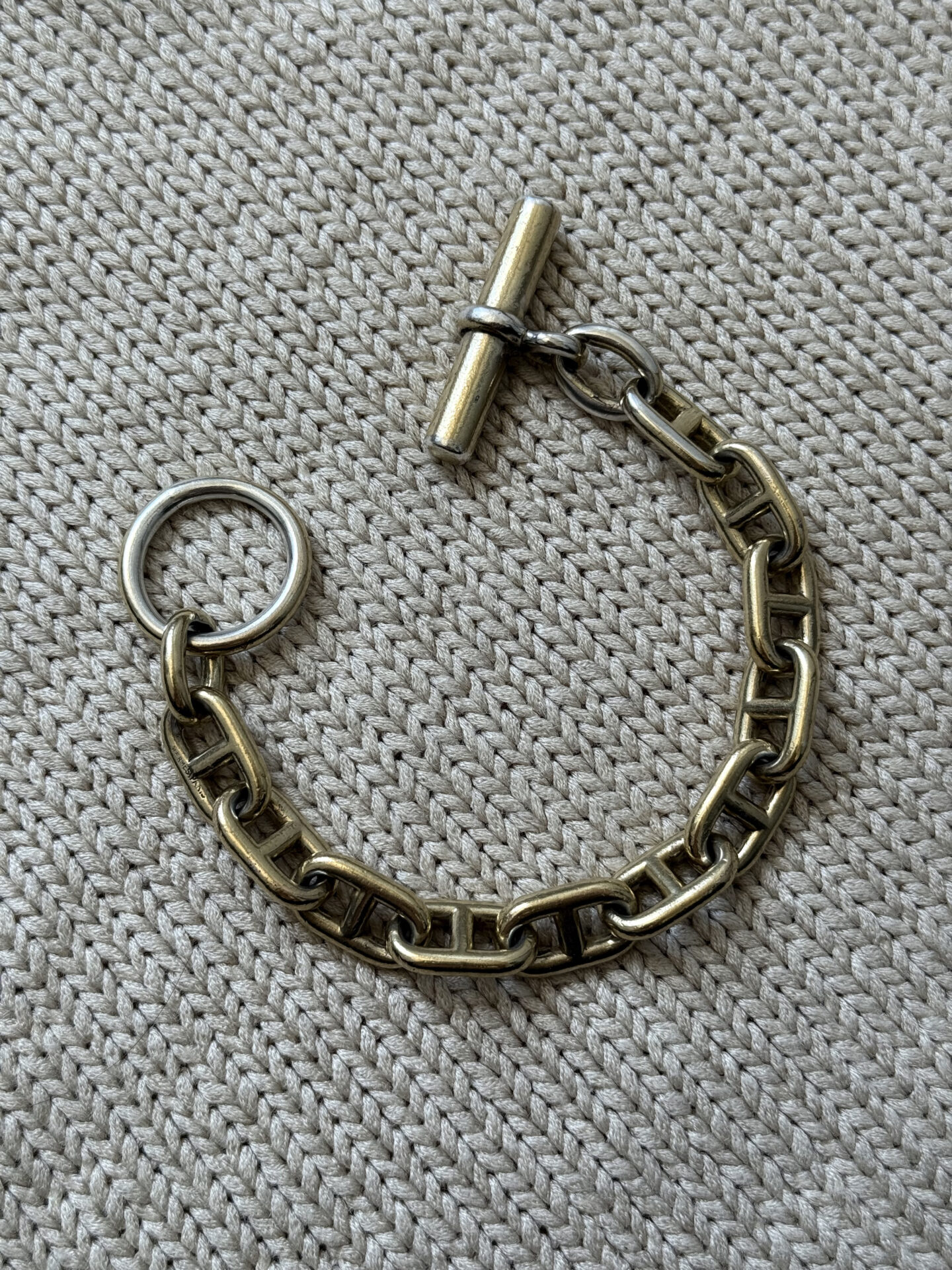 ロバルデーは注目すべきメーカーとして、HERMÈSと長年仕事を共にしてきたスイスのブランドGay Frères(ゲイ・フレール)や、フランスのジュエリー職人ジョルジュ・ランファン(Georges Lanfran)を挙げた。人気は「主に形による」という。中でも代表的なのが、1930年代からHERMÈSが採用している「シェーヌ・ダンクル」のモチーフと、太く重厚なリンクで構成された「アクロバット」だ。「高値で売れるのは1960年代以前に製造されたHERMÈSのクラシックモデルだ」とカウスは語る。「HERMÈSの刻印入りで、かなり古くめったに見かけないものを手に入れたこともあるが、買い手がつかない。求められるのは伝統的なものばかりだ」