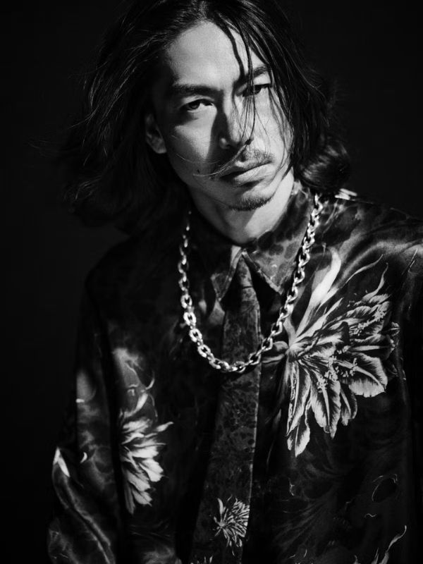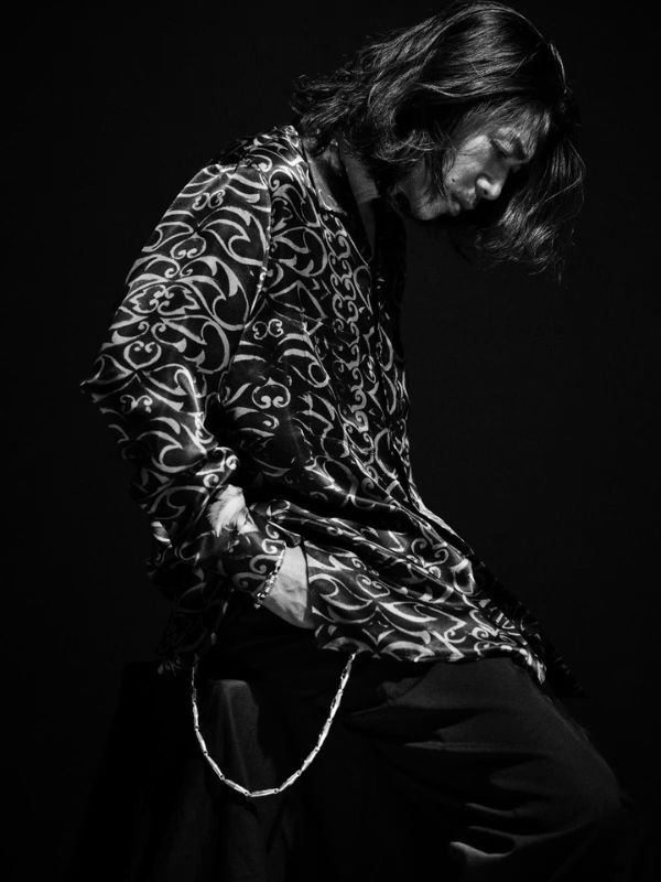 このシルエットは、Yohji Yamamoto POUR HOMMEの流れるようなブラックスーツにも引き継がれている。ブレザーのラペルには『ブラザー』に登場するものと同様のプリントが施され、襟を開けたシャツには、同様に色鮮やかな花柄や、うねる蛇のモチーフが、派手なネクタイと組み合わされている。さらに山本は『ブラザー』制作時にボリュームのあるシルバーのネックレスやリング、そしてブレスレットを手がける際、CHROME HEARTS(クロムハーツ)のバイカージュエリーから着想を得ていたとされているが、それらのアイテムもまた、今回のコレクションで再び登場している。