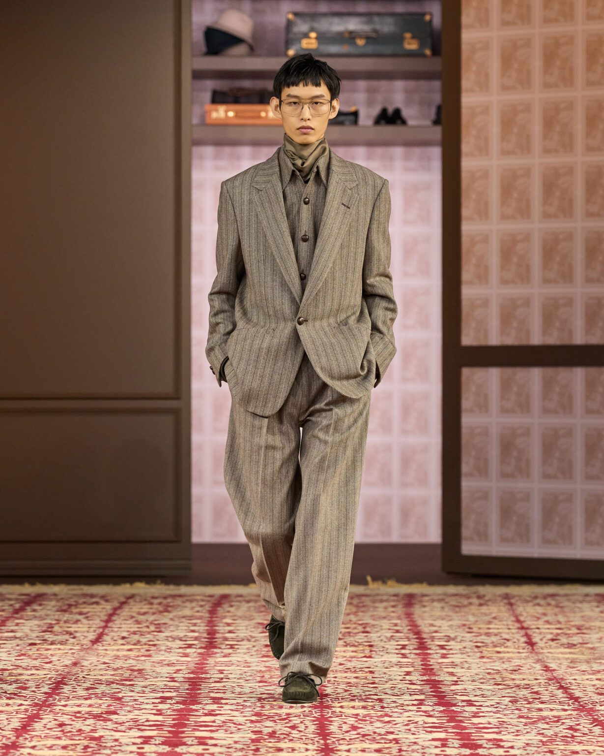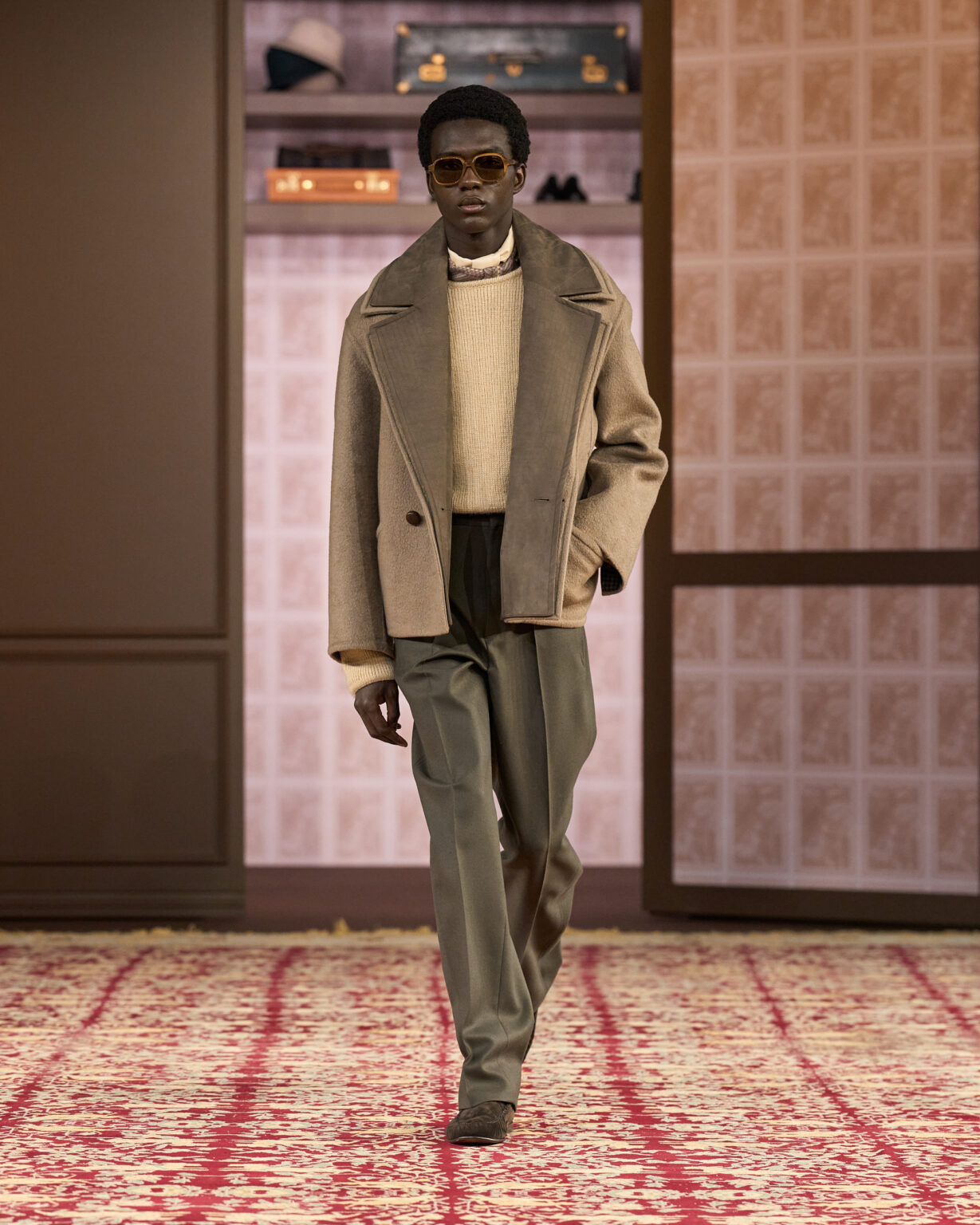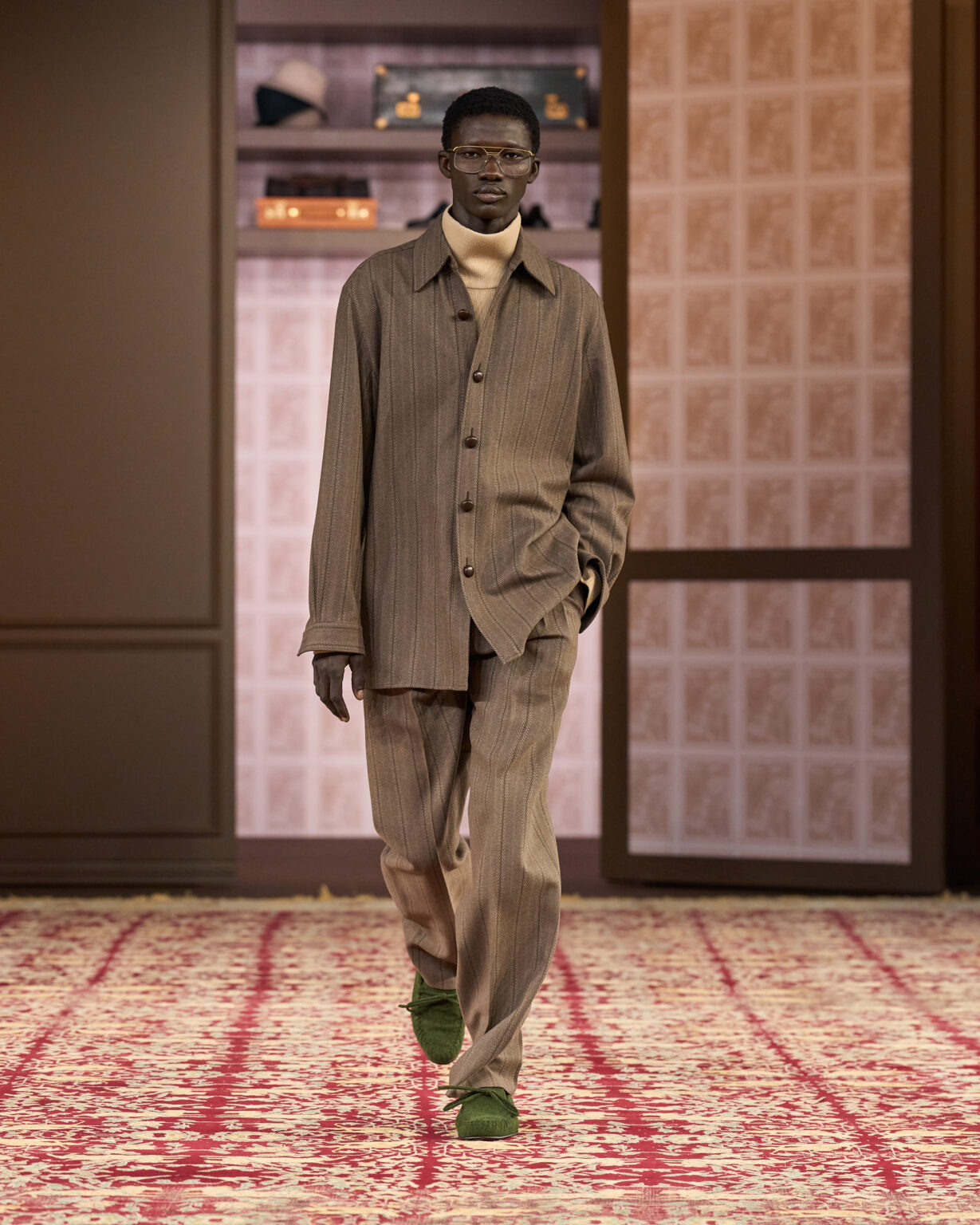 オアジ・ゼニアに象徴される卓越性と美の追求を具現化したのが、イタリアの匠の技の集大成である「オアジカシミヤ」。さらに、このコレクションでは、#UseTheExisitingTMによる原材料から作った花崗岩のような印象の素材、アルパカ、コットン混紡コーデュロイ、心地よい感触のウールツイルも登場。