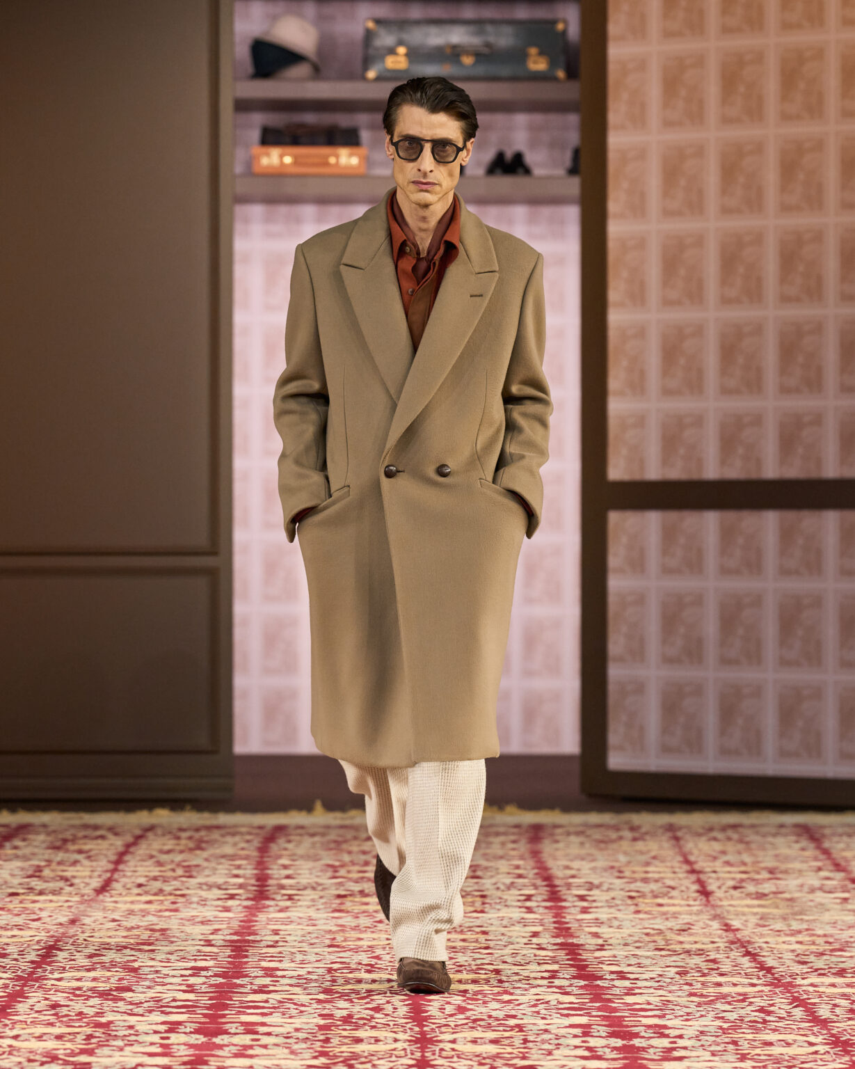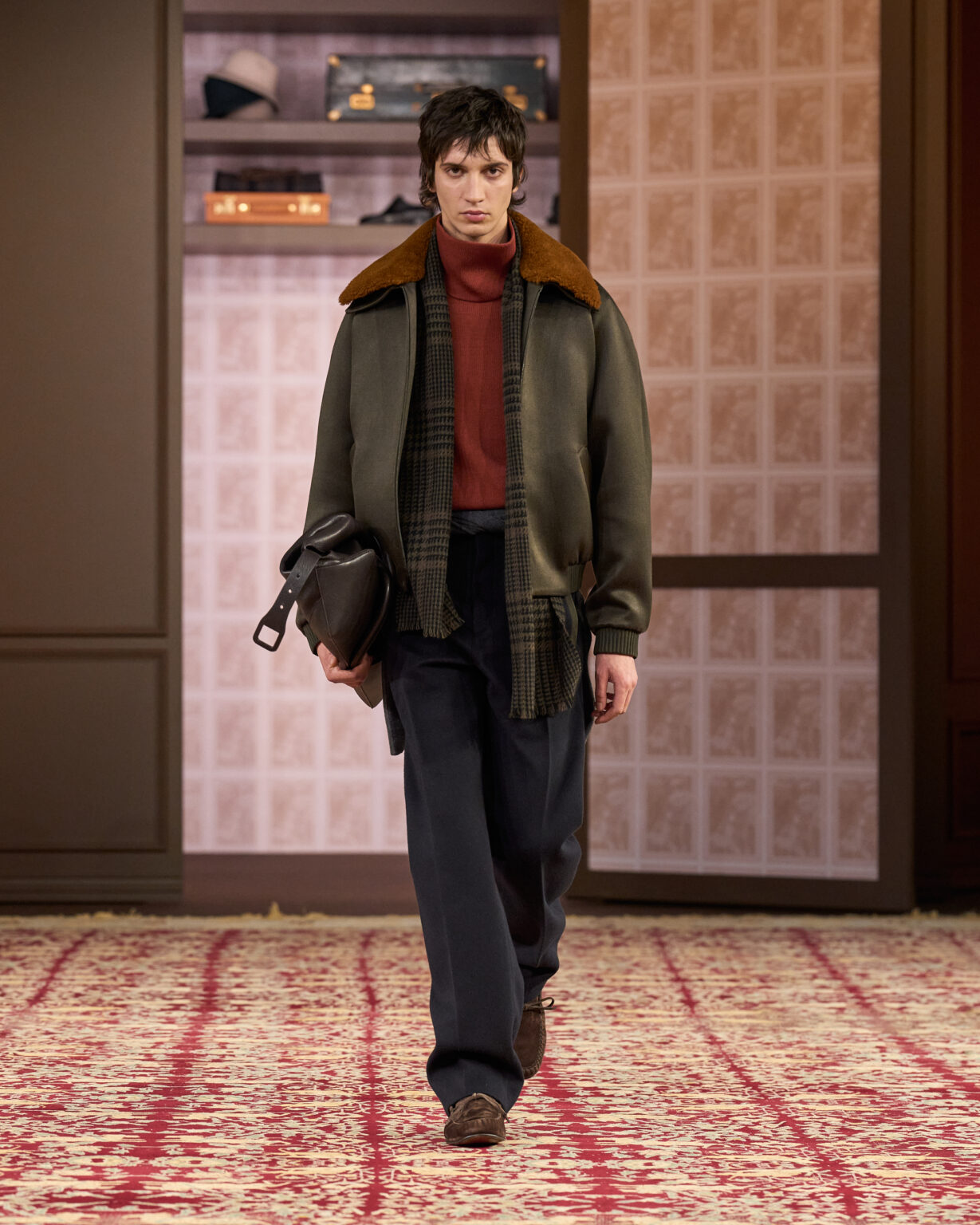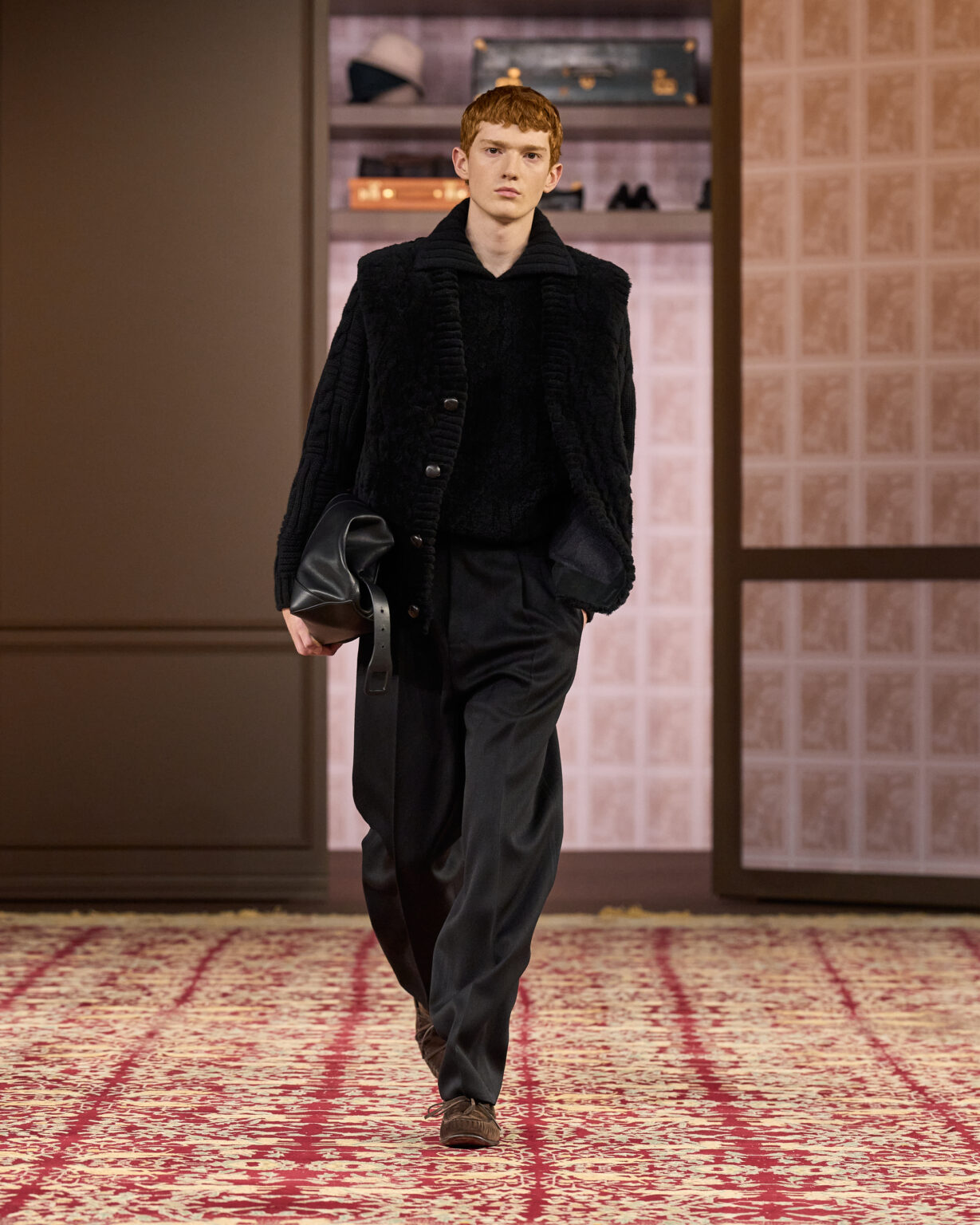 アーティスティック ディレクターのアレッサンドロ・サルトリは、シェイプ、シルエット、質感と機能性を調和させることで、引き続きゼニアのリブランディングを推し進めた。
